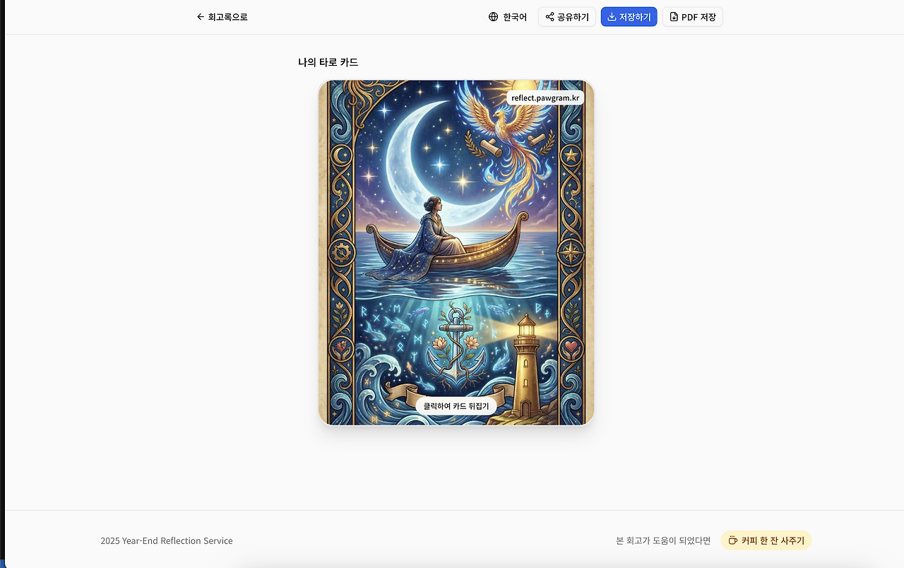 나만의 타로 카드와 회고 리포트를 만들어주는 곳이었다.