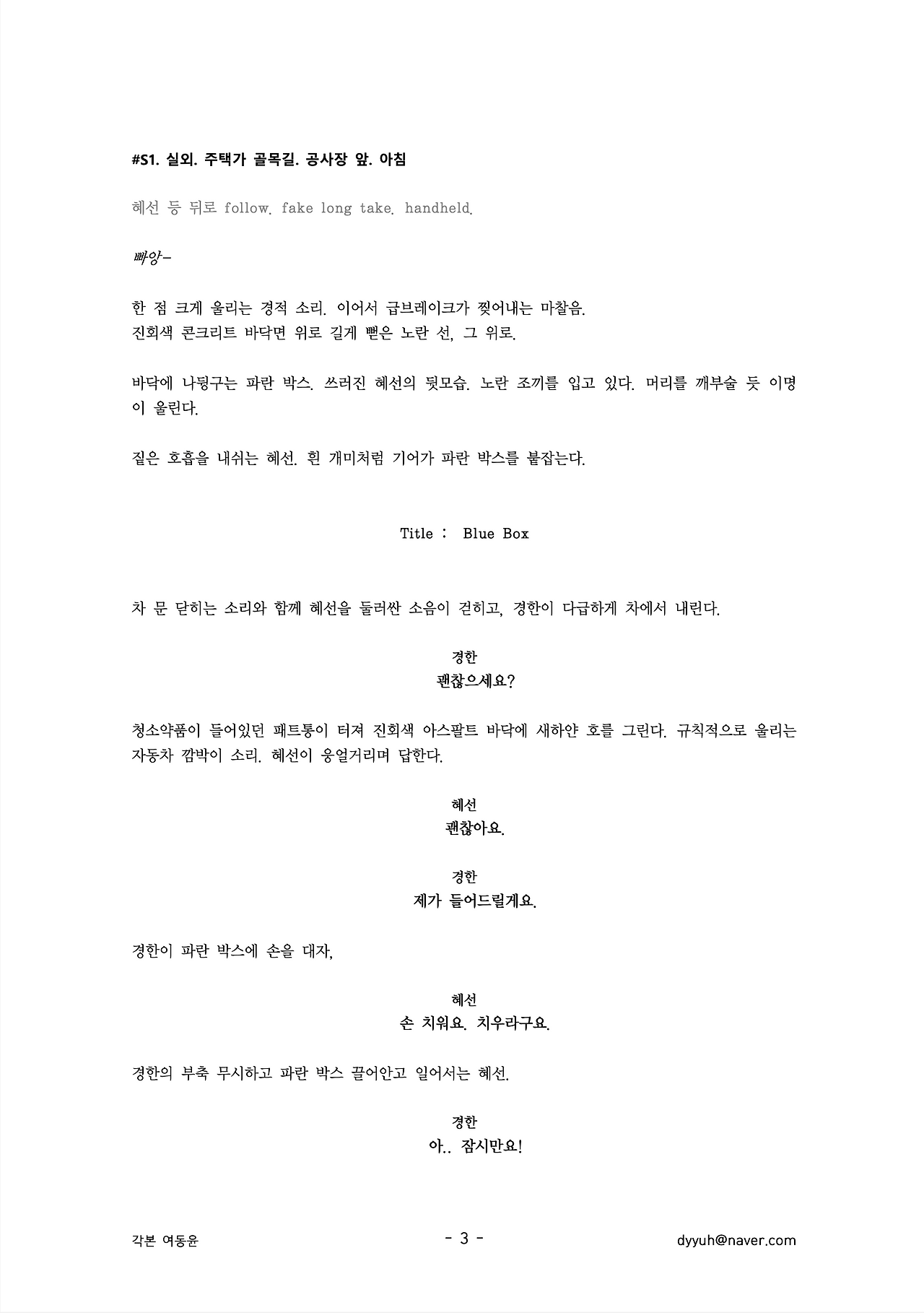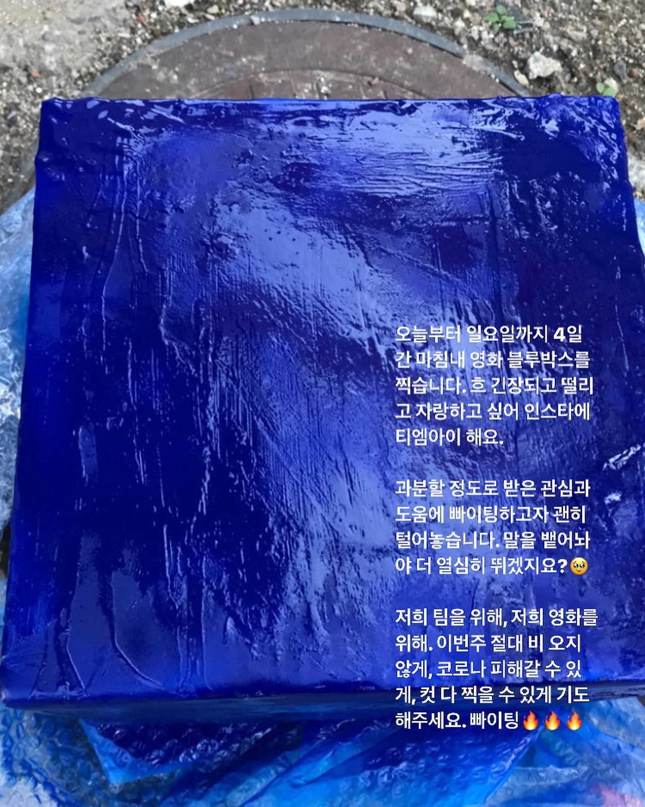 파란박스는 꿈이다. 꿈이 인생의 전부인 사람이 있다. 그들은 지난한 꿈의 과정을 감내한다. 과정이란, 호랑이와 곰이 사람이 되기 위해 쑥과 마늘을 입에 처 넣으며 견딘 시간에 비견된다. 도망치는 대부분이 호랑이고 남은 곰은 소수다.