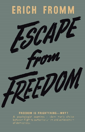 “이런 개인적 고독감과 무력감을 정상적인 보통 사람은 전혀 의식하지 못한다. 그 느낌은 그들이 의식하기에는 너무 무섭다. 그의 일상적인 활동, 그가 개인적 관계나 사회적 관계에서 얻는 자신감과 칭찬, 사업에서의 성공, 기분 전환, ‘즐기기’, ‘교제하기’, ‘여기저기 돌아다니기’는 그 고독감과 무력감을 완전히 덮어서 가려버린다. 하지만 어둠 속에서 휘파람을 불어도 빛은 비쳐오지 않는다. 고독감, 두려움, 당혹감은 그대로 남는다. 사람들이 그것을 영원히 참을 수는 없다. ‘무엇으로부터의 자유’라는 무거운 짐을 계속 짊어질 수는 없다. 소극적인 자유에서 적극적인 자유로 나아가지 못하면, 아예 자유로부터 도피하려고 애쓸 수밖에 없다.”