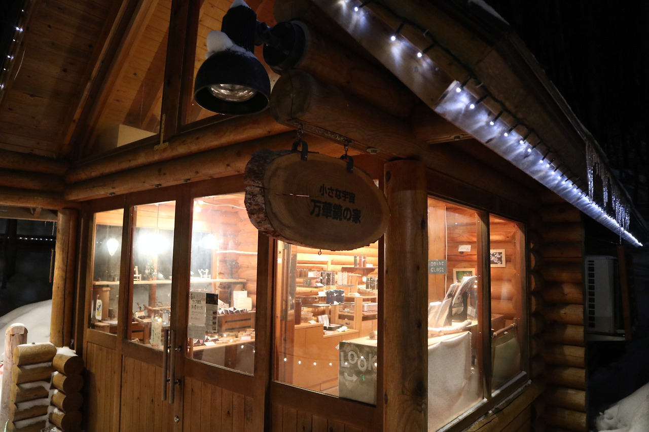 일일 투어의 마지막 코스는 후라노 리조트 안에 오두막으로 만든 공방이 여럿 모여 있는 곳인 닝구르테라스. '닝구르'는 숲을 지키는 지혜의 요정을 뜻한다는데, 왜 지혜의 요정인 건지는 모르겠지만 밤에 가니 확실히 요정이 나올 것 같은 분위기이긴 했다. 눈, 겨울, 통나무 오두막, 그리고 공방. 닝구르테라스를 설명하는 네 가지 키워드가 마법처럼 잘 어울린다. 오두막 하나하나에 아기자기한 핸드메이드 소품을 직접 팔고 있는 디자이너들이 있었는데, 사실 특별해 보이긴 했지만 일본 특유의 감성이 묻어나는 것 같지도 않고 고가의 돈을 주고서라도 가지고오고 싶을 정도의 물건은 없어서 사진만 열심히 찍었다. 불이 반짝반짝 켜진 닝구르테라스를 보기 위해 너무 늦은 시간에 방문한 탓인지 이미 문을 닫은 공방들도 많았지만, 이번에도 역시 목적은 쇼핑이 아니라 풍경이었으니 크게 아쉽지 않았다. (여름 후라노 여행에서 모든 공방의 문이 열리는 바람에 몇 군데에서 지름신이 내렸다는 건 안비밀...)