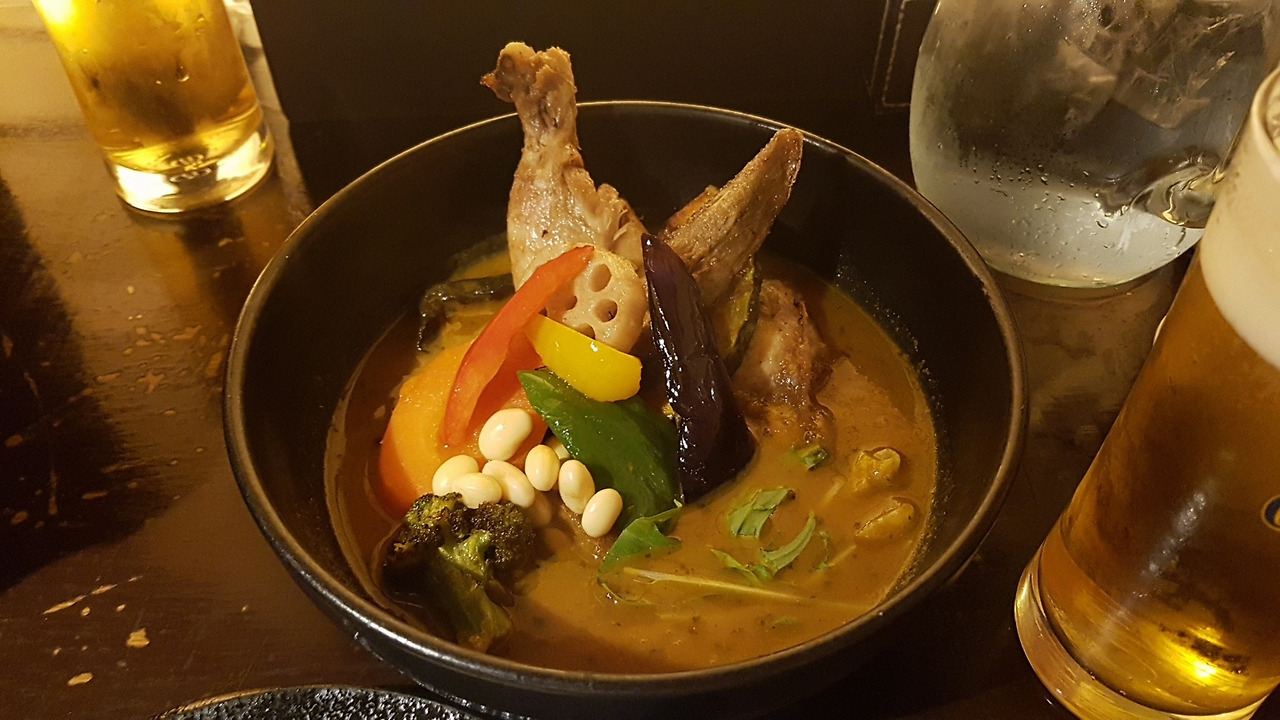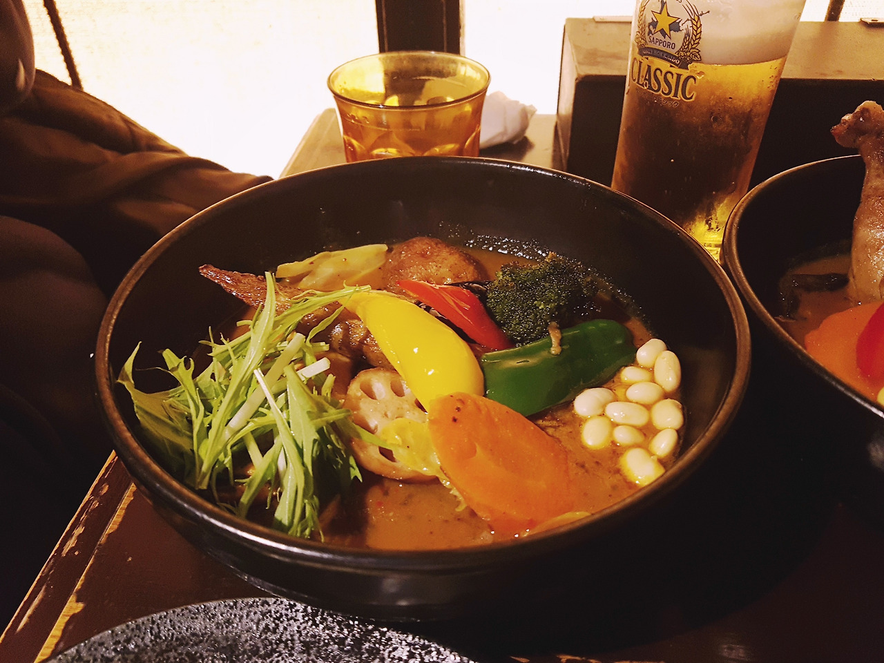 투어를 마치고 삿포로로 돌아오는 길에는 다행히 고속도로 통행 금지가 해제돼서 2시간 30분 정도 걸려서 오도리공원 역에 도착했다. 가는 길에 지연된 시간 때문에 2시간이 더 걸려 투어가 끝난 시간은 밤 9시 20분. 비에이역에서 거의 들이마시다시피 먹었던 라멘은 소화된 지 이미 오래였고, 이후에 거의 아무것도 못 먹고 쫄쫄 굶은 채로 버스에서 내리니 다리가 후들거렸다. 밤늦게까지 먹을 수 있는 식당은 스스키노 거리에 많았고, 아무리 배가 고프고 힘들어도 삿포로에서의 마지막밤을 기억할 만한 특식을 먹어야겠단 생각에 후들거리는 다리로 기어코 걷고 걸어 스프카레집을 찾았다. 스스키노 거리에 있는 빈티지한 인테리어의 스프카레 식당 '사무라이'. 비밀스러운 철문을 열고 좁은 계단을 올라가는 동안 이미 맛집임을 확신했다. (여행 갔다온 후 짠내투어를 보니 정준영이 여길 맛집으로 소개하는 바람에 뭔지 모를 뿌듯함을 느꼈다.) 어떤 메뉴든, 치킨이 들어가면 무난히 성공일테니 치킨 스프 카레를 주문했다. 홋카이도의 모든 식재료는 일본 전역에서 최고라는 가이드의 설명이 생각날 정도로 싱싱하고 건강한 맛의 재료들이 가득 담긴 카레였다. 한국식으로 밥을 비벼 먹으면 안된다길래 밥 따로, 카레 따로 떠먹었다. 보통 우리나라에서 생각하는 걸쭉한 카레가 아니라 말 그대로 스프에 가깝고, 따뜻하게 막 나왔을 때는 야채가 잔뜩 들어간 카레탕이라고 하는 게 더 나을 것 같기도 하다. 여기에 삿포로 클래식 생맥주도 또 한 잔씩! 맥주 한 모금이 온 몸으로 찌르르 퍼져나가 흡수되는 느낌은 이때 처음 느꼈던 것 같다. '사무라이'라는 이름에서 느껴지는 거칠고 무뚝뚝한 느낌과는 달리, 춥고 지치고 배고팠던 우리에게 따뜻한 휴식을 선물해 준 식당인 데다가, 오다기리 조 느낌으로 구부정하게 서서 무심한 표정으로 음식을 만드는 직원들마저 마음에 들었다. 게다가 일본 하이틴 무비를 찢고 튀어나온 것 같은 일본풍 꽃미남들이 서빙해주는 이런 식당은 아마 오랫동안 잘 될 것 같다는 지극히 사심 가득한 예감.