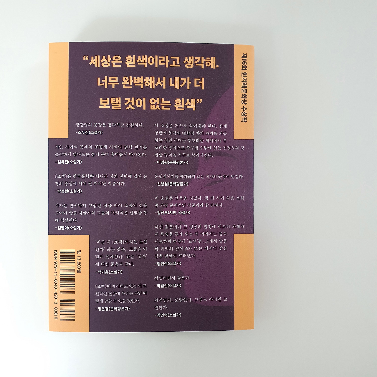 셋째로, 저는 과업과 무관하게 사람이 의미 있는 삶을 살 수 있다고 생각합니다. <표백>을 쓰고 난 뒤 저는, '위대한 일'에 집착하는 세연과 달리, 남들이 무가치하다고 무시하는 일에 매달려 끝내 의미를 찾아내고야 마는 주인공에 대해 3년 안에 쓰려 했습니다. 그렇게 쓴 소설이 <열광금지, 에바로드>입니다. (후략) (347쪽)