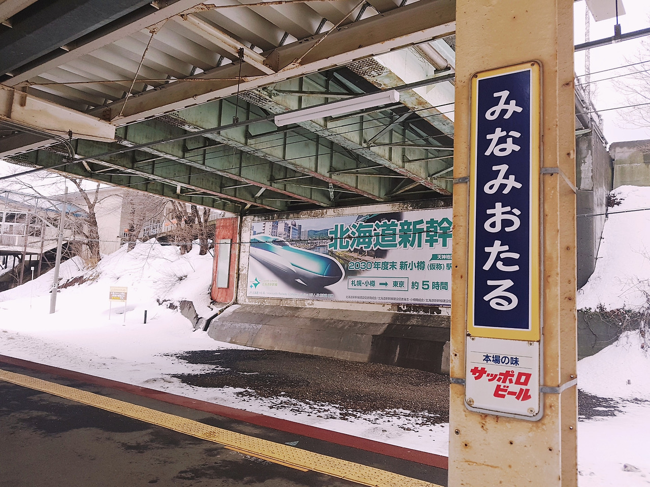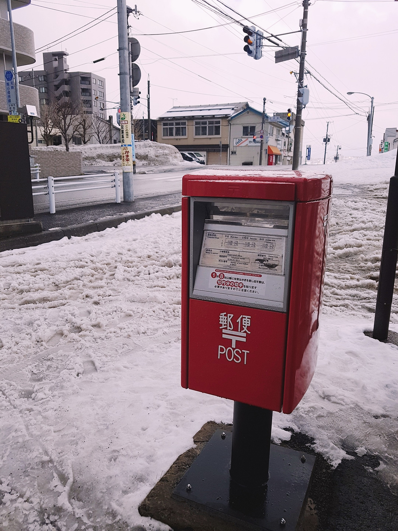 오호츠크해가 보이는 JR 열차(왼쪽), 미나미 오타루 역에서 오타루 역까지 걷는 코스를 선택했다(가운데), 눈과 잘 어울리는 빨간 우체통(오른쪽)