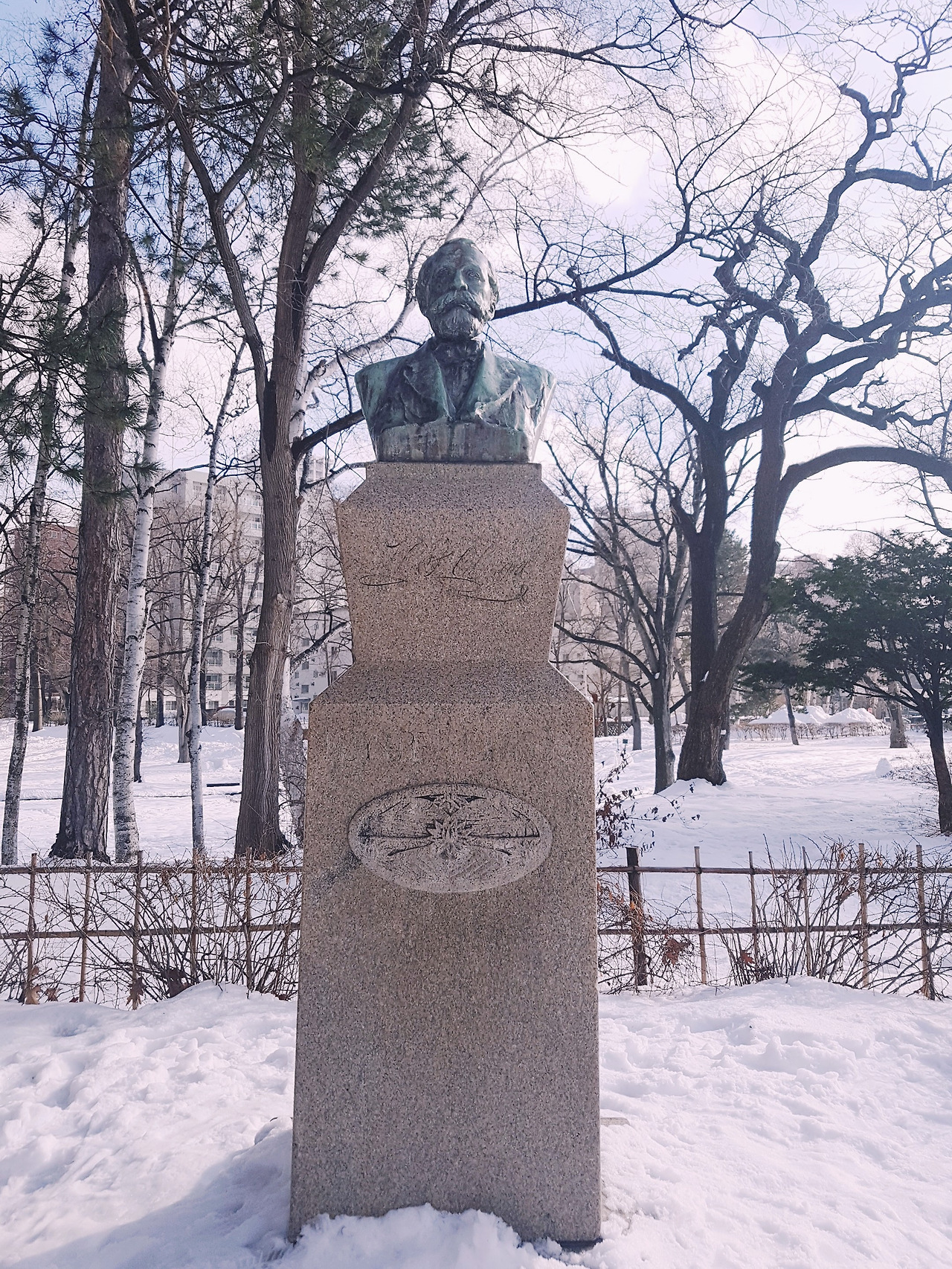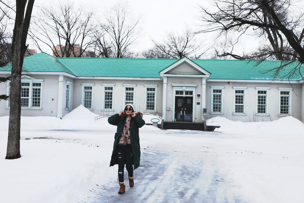 이 날은 오후에 오타루에 갈 예정이었다. 구 청사를 둘러보는 데 생각보다 시간이 오래 걸리지 않아 오타루 가기 전에 들를 만한 곳을 한 군데 더 급히 찾았다. 그래서 눈 쌓인 캠퍼스가 아름답다고 유명한 홋카이도 대학 캠퍼스를 잠깐 산책하기로 했다. '러브레터'의 후지이 이츠키같은 캠퍼스 커플이 홋카이도 대학에도 있을 것만 같다는 감성적인 생각을 환한 대낮에도 할 수 있었던 건, 아마도 삿포로에 내린 눈의 마법 때문이다. 그런데 막상 가보니 홋카이도 대학 캠퍼스는 눈도 눈이지만, 건물 자체가 워낙 예뻐서 이런 곳에서 대학생활을 하면 누구든 사랑에 빠지지 않고는 못배기겠다는 생각마저 들었다. 붉은 벽돌로 지어진 본관 말고도 파스텔톤 목조 건물들이 많아 쌓인 눈을 솜사탕처럼 보이게 하는 달달한 효과가 있었다. 이렇게 감성적인 캠퍼스에서 대학생활을 해도 매일 조모임하고 레포트 내느라 쩔어서 걸어다니다보면 이 예쁜 풍경들이 다 무심하게 느껴지게 될까? 설마, 말도 안된다. 핑크색 목조 건물이 예뻐서 창문 들여다보다가 연구중이신 것 같은 노교수님과 눈이 마주쳐 깜짝 놀라서 숨었다. 지나가다 보니 창너머로 진지하게 수업중인 교실도 보였다. 이런 대학교의 교실 창가 자리에 앉아 있으면, 가슴 속에 찡한 뭔가가 올라와 다 멋진 글이 될 것만 같았다. 제설 작업을 해놔서 길 양옆에 허리까지 눈더미가 쌓여있는데도 바닥은 계속 눈길이었다. 눈길 위에서 열심히 사진을 찍고 있는데, 수업 하나 끝나고 다음 수업 강의실로 이동하는 것처럼 보이는 학생들이 보였다. 어느 나라나 대학 캠퍼스에는 젊음의 생기가 느껴진다. 그리고 눈길 위에서 친구와 헤드락을 걸었다가 풀었다가, 휘청휘청 곡예를 하듯 장난을 치고 시끌벅적하게 지나가는 그들은 분명 홋카이도 출신 학생들이거나 고학년 학생들임에 틀림없었다. 눈길 위의 곡예 솜씨가 보통이 아니었다. 방학일 줄 알았더니, 일본에서는 겨울방학이 1월 첫째주쯤까지로 끝나고 1월 말에 다시 봄방학을 한다는 걸 보니 개학하고 바로였던 것 같다. 구글 지도를 켜 보니, 캠퍼스 내부에 위치한 윌리엄 클라크 흉상이 가볼만한 곳으로 표시돼 있었다. boys, be ambitious!라는 유명한 말을 남긴 분이라는데, 알고보니 윌리엄 클라크는 홋카이도 대학의 초대 총장이었다고 한다. 지금은 일본의 명문대학으로 꼽히는 국립 종합대학 중 하나지만, 개교 당시에는 24명의 학생이 전부였던 농학교(農學校)였으니 총장이 직접 학생들에게 야망을 크게 가지라고 힘주어 말했을 법하다. 그러나 정작 흉상 자체에서 깊은 감동을 받진 못했다. 흉상이라도 크기를 거대하게 만들어 놓았거나, 적어도 야망에 차 있는 눈빛 정도는 느낄 수 있게 해 놓았을 거라 기대했는데, 생각보다 자그마한 크기로 길모퉁이에 숨어 있는 윌리엄 클라크 씨와 짤막한 인사만 주고 받은 채 캠퍼스 구경을 조금 더 이어갔다. 학생 식당에서 아까 뛰어난 곡예 솜씨가 인상적이었던 대학생 친구들과 밥 한 끼 먹고도 싶었지만, 오타루 일정이 바빠 아쉽게 발을 돌렸다.