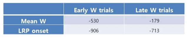 이 그림에서 Onset 과 Will의 시간적 우위는 상당히 중요하다. 자유의지의 개념이 허구이냐 아니냐는 이 시간적 우위의 설명으로 충분히 근거할 수 있기 때문이다. 시간 우선순위에 관해 이야기하기 전에 알아봐야 할 것이 있다. 해거드는 리벳의 실험을 재현하고 새로운 표지자인 측면준비전위(The lateralized readiness potential, LRP)의 중요성을 이야기한다. 측면준비전위는 머리에서 대칭으로 이루어진 두 운동 영역에서 얻어낸 뇌파 신호의 차를 수학적인 계산으로 얻을 수 있다. LRP는 피험자가 오른손 혹은 왼손을 반드시 행동해야 하는 선택 과정에서 특히 심리학적으로 중요성을 갖는다고 이야기한다. 만약 뇌파 기록을 이용해 LRP를 얻어내는 과정에서 LRP가 출현했다면 피험자는 어느 쪽을 움직일지 선택이 끝난 상태인 것이다. 해거드는 RP1, RP2에 상관없이 평균 W가 비슷하게 보고된 것에 반해 LRP의 경우 W의 시간에 따라 예측적인 방식으로 변화하는 것을 관찰했다.