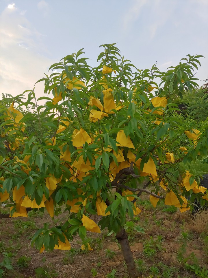 마을을 구석구석 돌면서 살펴보니, 어릴 때 시골 동네에서 흔히 보던 시멘트 담벼락엔 할머니들이 심은 울타리 콩이 마치 어릴 적 그 시절 인양 이쁘게 자라고 있었고 마을 끝자리와 소나무 숲의 경계에는 노랑꽃이라도 수북이 핀 듯 정성껏 노랑 봉지를 씌운 복숭아나무 한그루가 자라고 있었다. 그 복숭아나무를 지나 두어 발자국 앞에는 농익은 오디가 따먹을 사람 없어 서러운 듯 가득 떨어져 있다. 그냥 지나칠 내가 아니므로 까맣게 잘 익은 놈으로 하나 따서 먹어보니 이제껏 먹어본 오디 중 최고로 달고 맛있었다.
