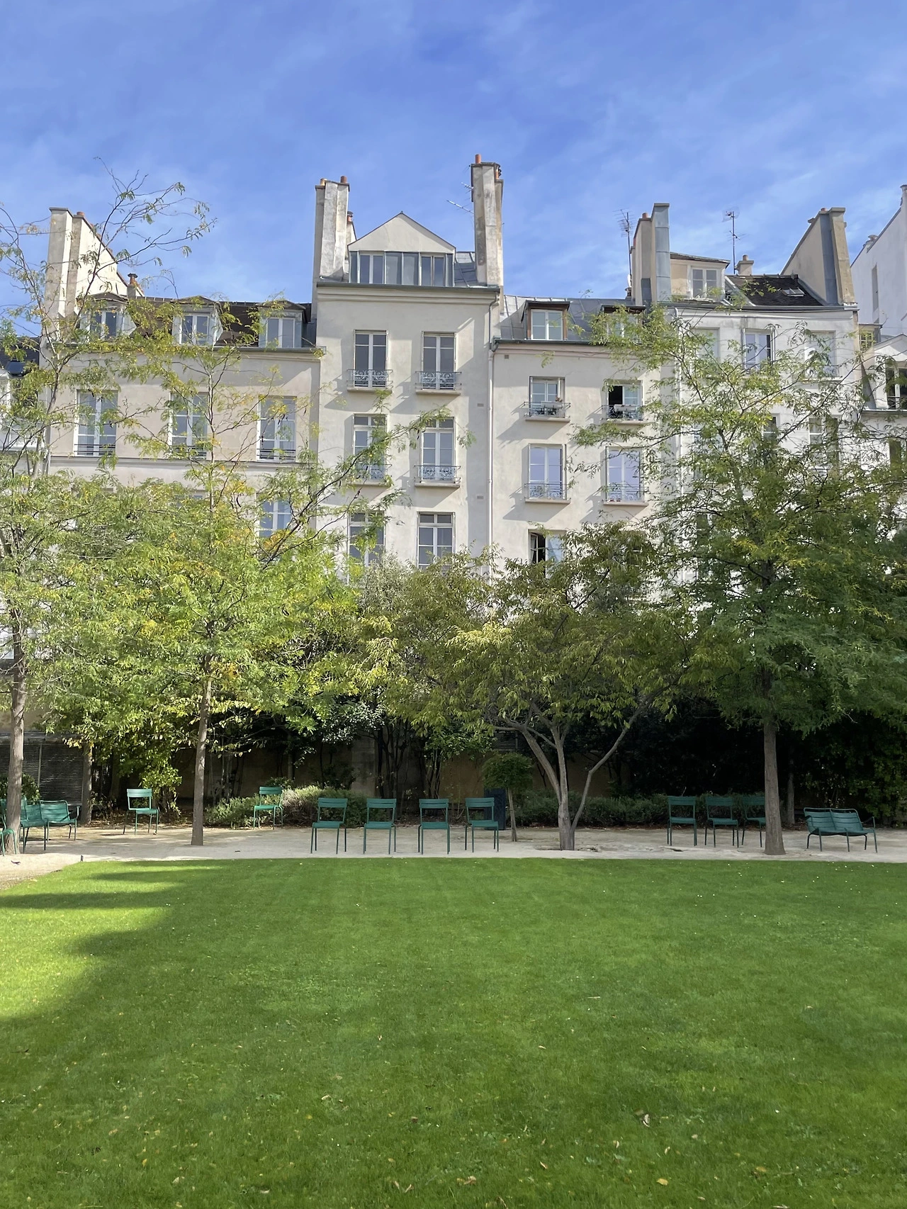 의자에 앉아 마주보는 뒷건물들의 반복적인 구조와 창문의 모습이 묘하게 안정감을 주었다.