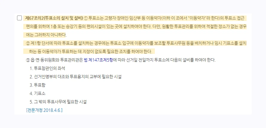 (제67조의 2 2항에 따라 이동 약자가 투표하는 데 지장이 없도록 필요한 조치가 세워지는 것도 아니었다.)