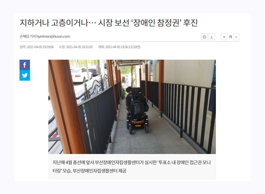 어제부로 올해 서울 시장 선거가 끝났다. 언제나처럼 치열한 선거였다. 여기서 '치열한'은 후보들뿐 아니라 투표 참여에 있어 어려움을 겪는 이들의 치열함도 속해있다. 바로 '장애인'이다.