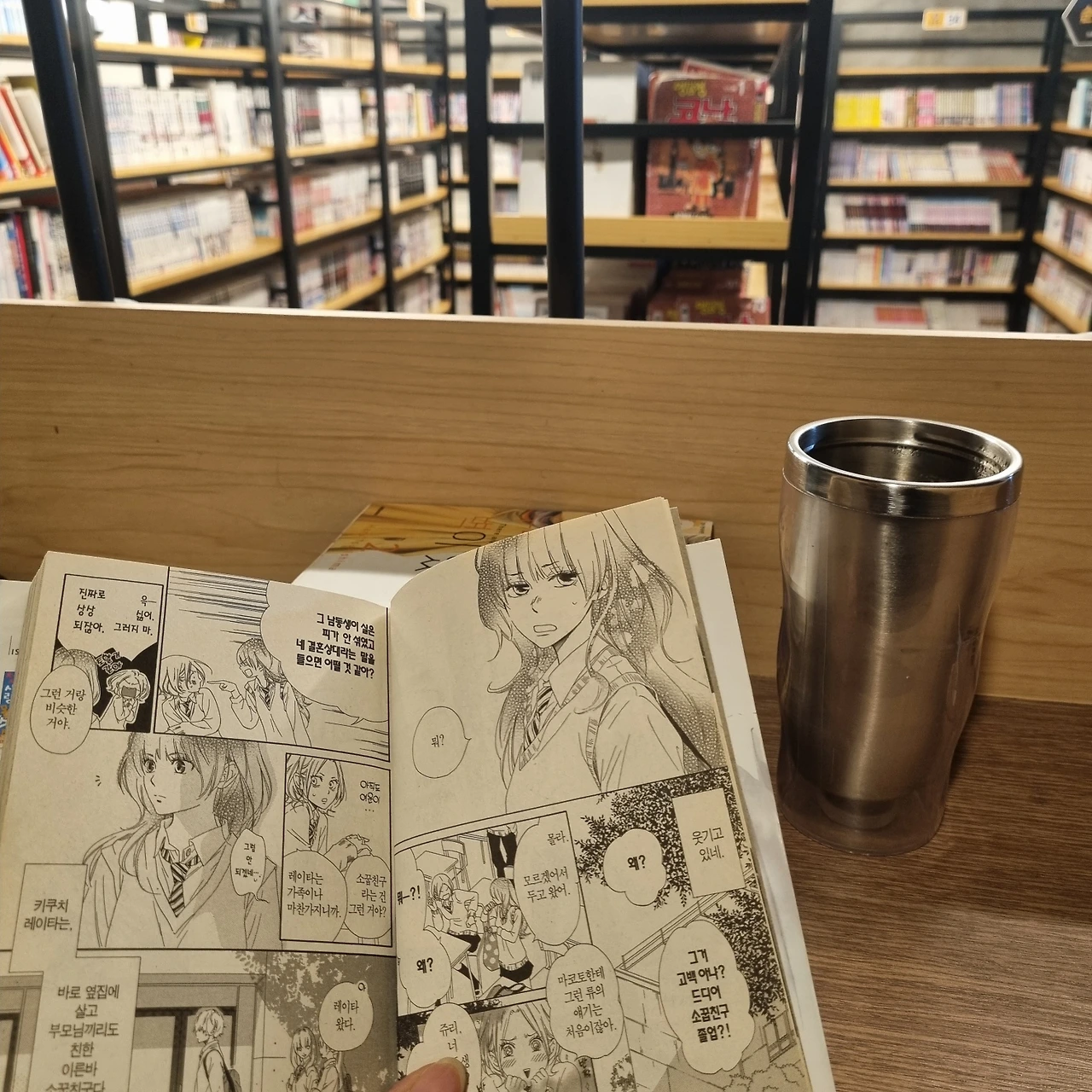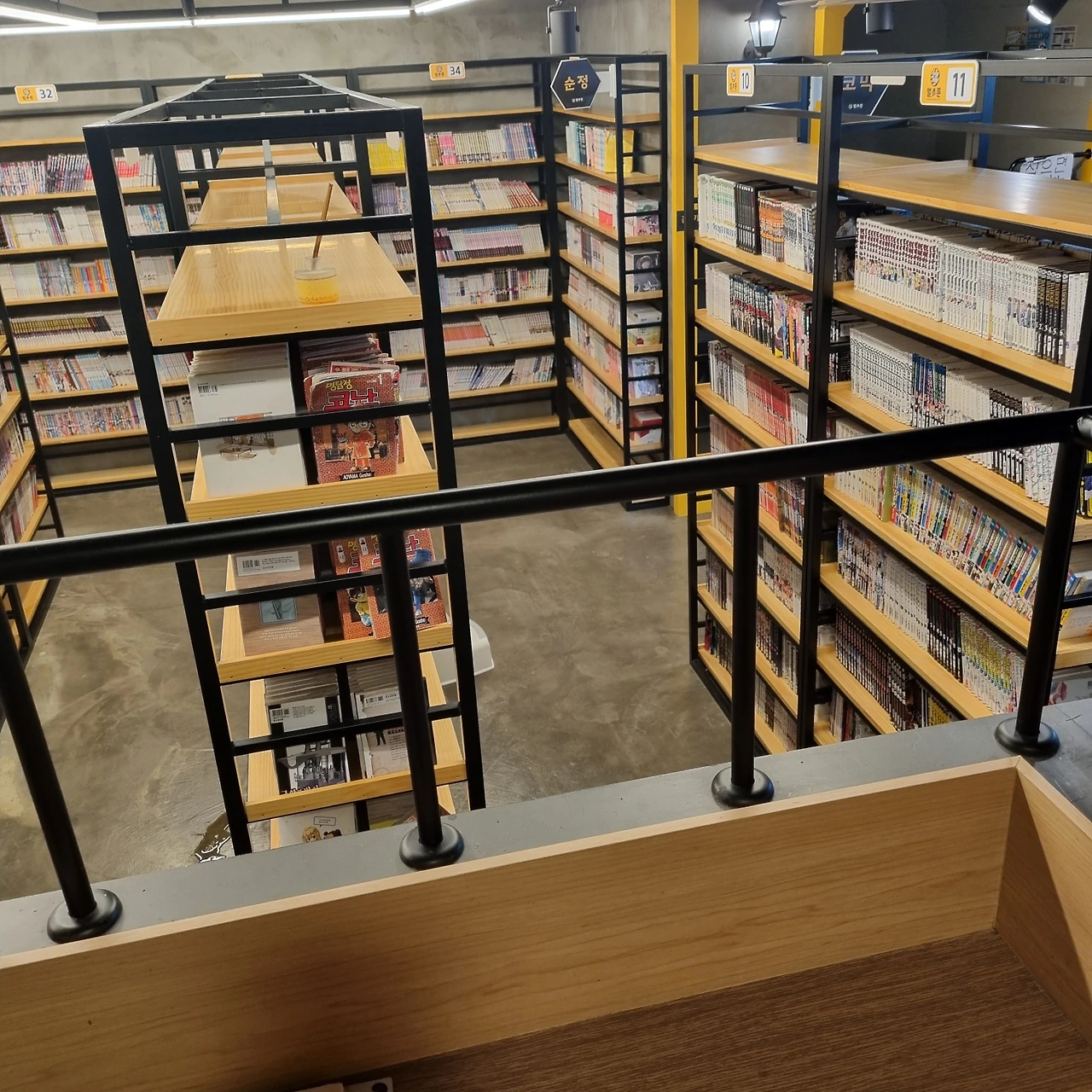 그중 취향을 저격할 만한 장소를 골라 드디어 안으로 입성. 높은 층고에 층층이 진열된 만화책들이 가지런히 정리되어 있어 서점 분위기도 나면서 엄청 쾌적하고 시스템이 체계적이었다.