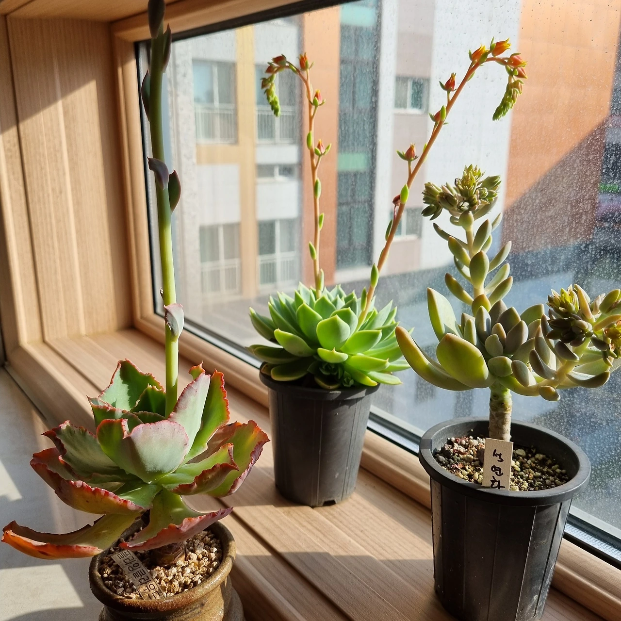 예쁘다고 욕심을 부려 데리고 왔다. 그것도 세 개나. 웬만해선 잘 죽지 않는다는 선인장을 웬만하지 않은 탓에 보낸 이후로 처음이다.