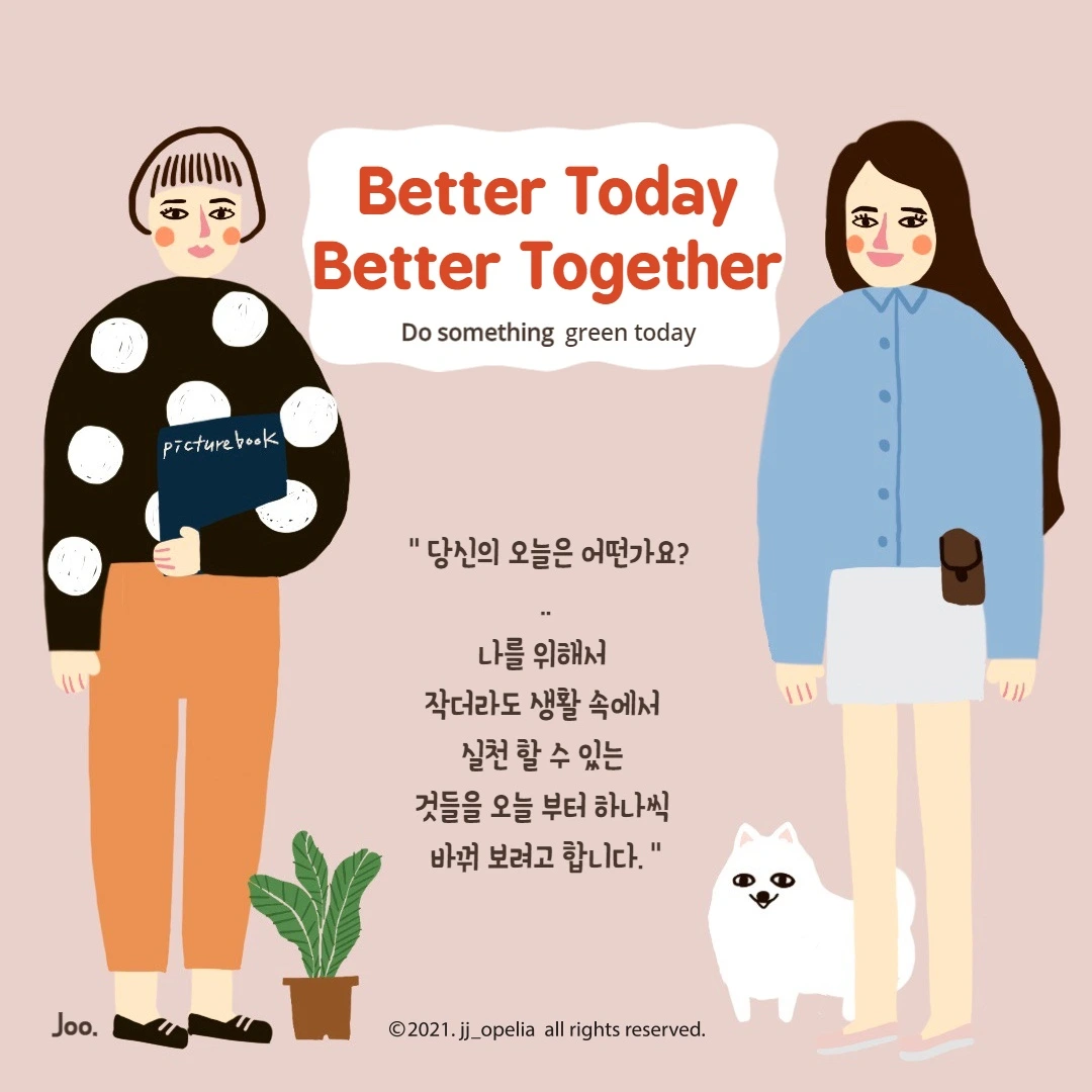3년 전 이맘때, 언젠가 우리도 태어난 김에 지구를 위해 뭔가를 해보자 마음을 먹었다. 서로 환경에 대한 걱정과 관심이 있던 터라 의기투합한 결과물이 일사천리로 이루어졌다. ‘나비효과’를 기대하며, 처음엔 ‘작은 움직임 정도로 시작하자.’였지만 은근히 둘 다 ‘나비효과’를 기대하며, 비건식당도 일주일에 두 개씩 찾아다니고 열의가 대단했다. 세상은 넓고 할 일은 많다고, 알면 알수록 실천해야 할 것들, 알아야 할 것들이 많았다. 그간 환경을 보호해야 한다는 인식만 있었지. 알지만, 생활 속 실천으로 옮기기에 귀찮거나 번거로워 행동으로 이어지지 않는 것들도 많았다. 처음부터 의무가 되면 하다가 흐지부지 되는 경우가 많아 불편함 들은 개선점을 찾아보고 습관이 될 수 있도록, 쉬운 것부터 찾아 실천할 수 있는 것들을 SNS에 매주 올리기 시작했다. 그렇게 가시화하다 보니 나의 일상도 조금씩 바뀌는 게 눈에 보여 뿌듯했다.