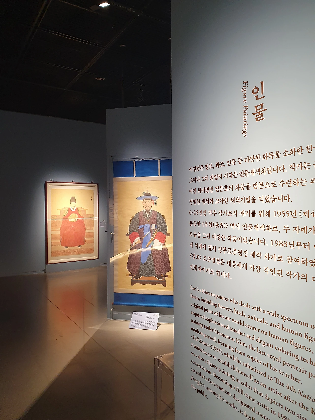 1 전시실 기획전은 수원에서 활동한 이길범 화백의 전시다. 정조 어진(소실되어 상상으로 그렸을 텐데 어떻게 그렸을지 너무나 궁금함)을 포함해 그의 초기부터 후기까지 작품과 작품을 위해 모은 자료부터 스케치까지 전시하고 있었다.