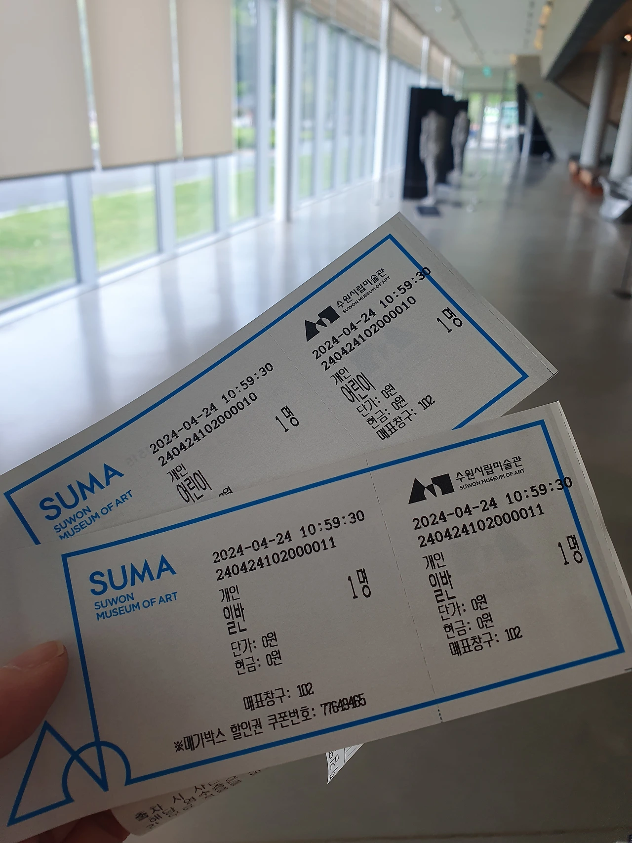 주차장에 차를 세우고 유모차를 밀며 엘리베이터에서 내리는데 앞에 서계시던 도슨트(이름표를 걸고 계셨음)께서 입구로 가서 티켓팅을 해야된다고 말씀해 주셨다.