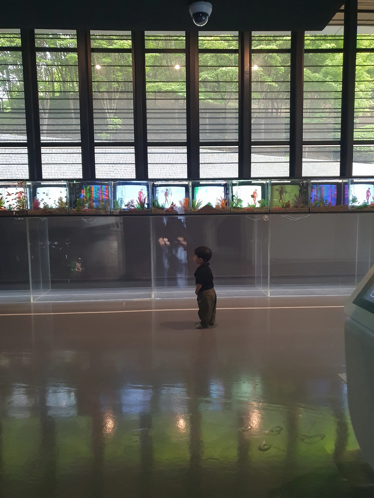 그런데 백남준 아트센터에서는 반짝이는 화면들, 신기한 작품들이 눈길을 끌었는지 아이는 소리 한 번 내지않고 작품 감상에 최고의 조력자가 되어주었다.