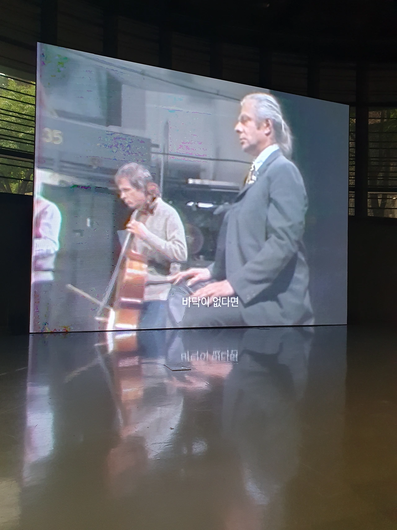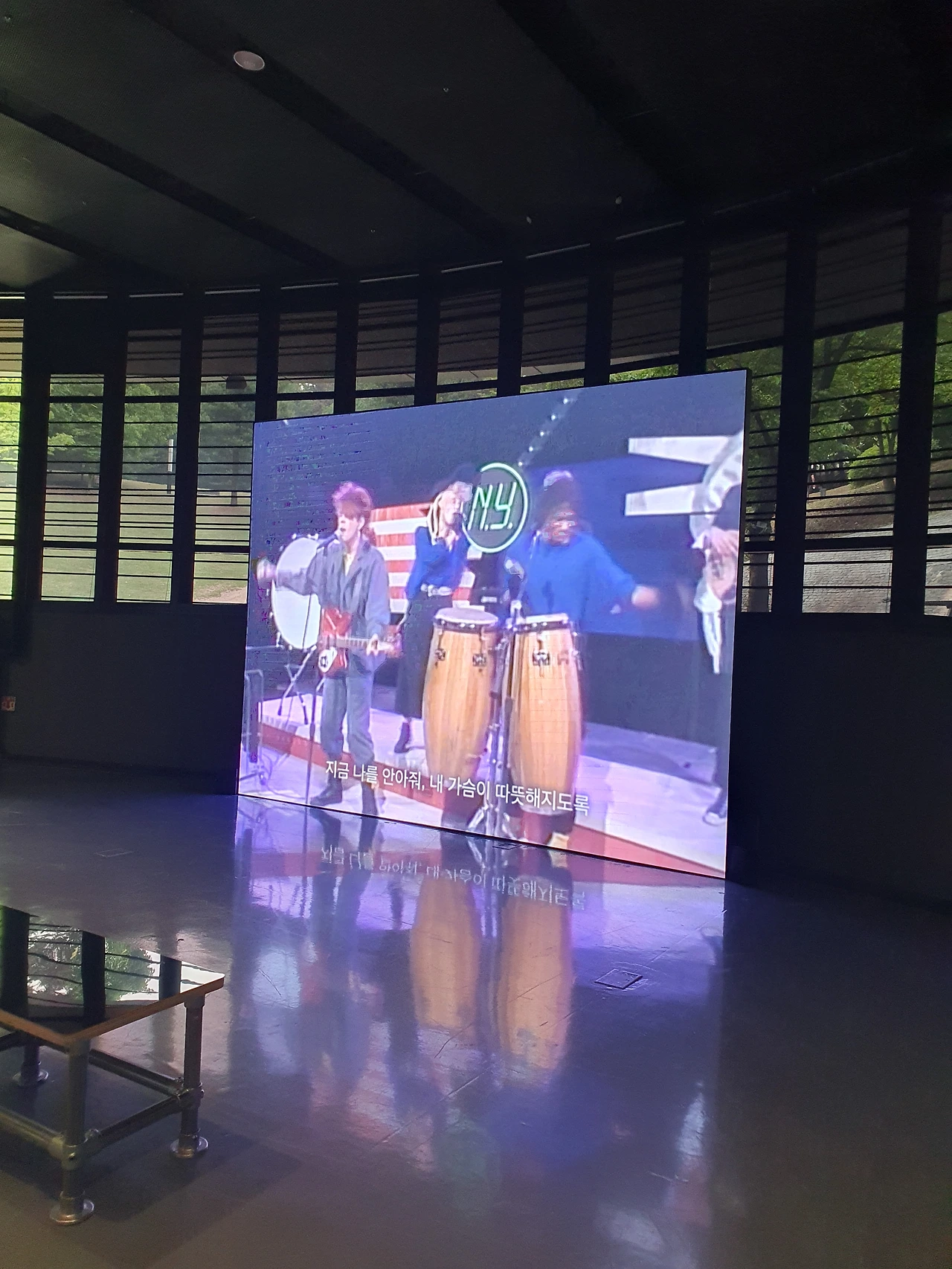 전시장 전면에는 나무들 사이로 티비가 켜져있고 춤추는 사람들이 나왔다가 사라졌다가 한다.