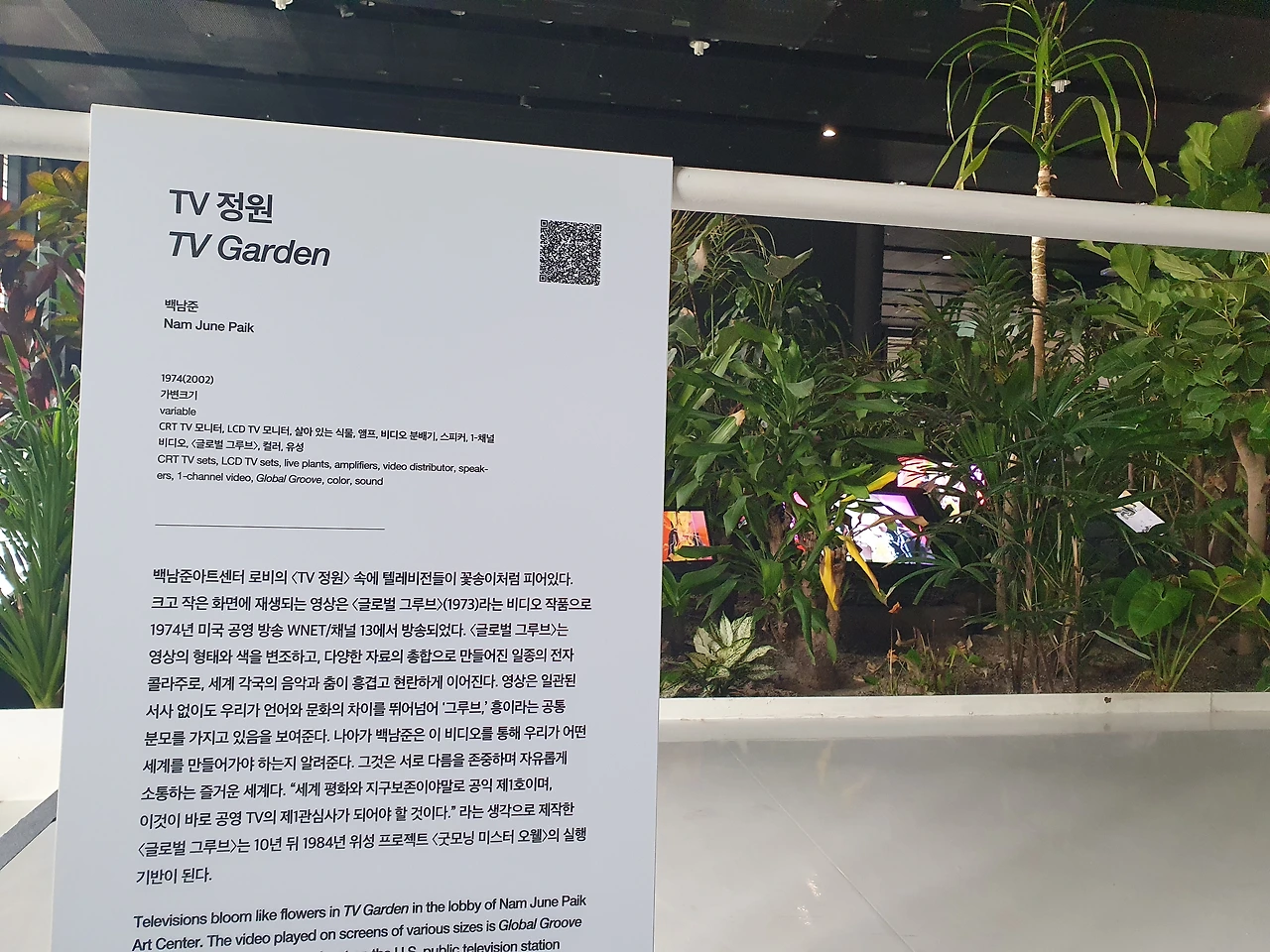 이상한 화면들이 연신 반복되고 티비를 나무 사이에 파묻은 것이 무슨 예술이냐 했었는데 설명을 읽고 보니 백남준의 메시지를 조금 이해할 수 있을 것 같다.