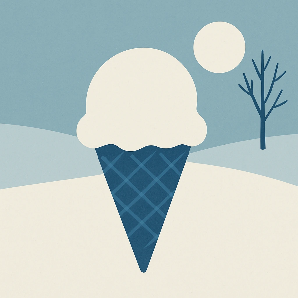 아이스크림은 어느 계절에나 먹을 수 있다. 그러나 겨울철 아이스크림은 '먹는다'는 표현보다는 '누린다'라는 표현이 더 어울린다. 눈앞에 추위를 마주하고 있음에도 여유롭게 추위로 만들어진 음식을 즐긴다는 것은 겨울의 냉랭한 세계와 나의 안락한 세계가 그만큼 대비되기에 가능한 것이다. 이 대비가 긴장감이 아닌 안전함을 강조하고 있기에, 불안함과 예민함을 내려놓고 기쁨만 그릴 수 있게 하기에 가능한 것이다. 또한 추위 속에서 한가로이 아이스크림이 주는 달달한 맛에 취할 수 있다는 것은 겨울의 고고하고 수수한, 우아한 분위기에 취할 수 있기에 가능한 것이다. 겨울의 아름다움을 알아볼 만큼 겨울이 그리는 풍경에 애정이 생겼기 때문에 가능한 것이다.