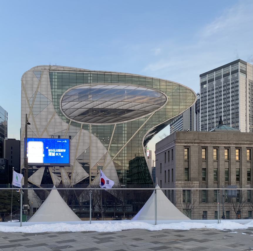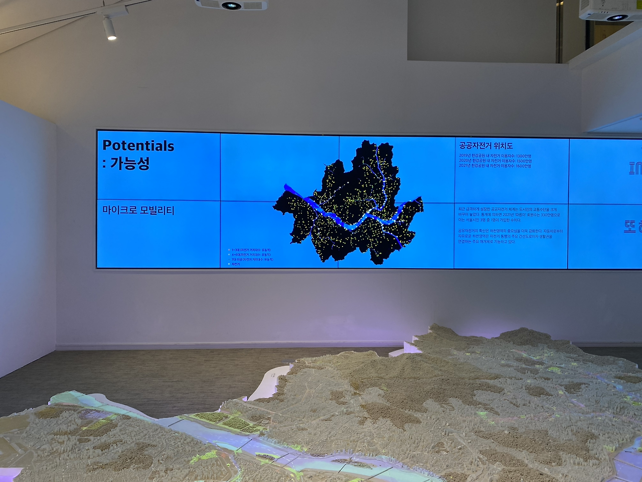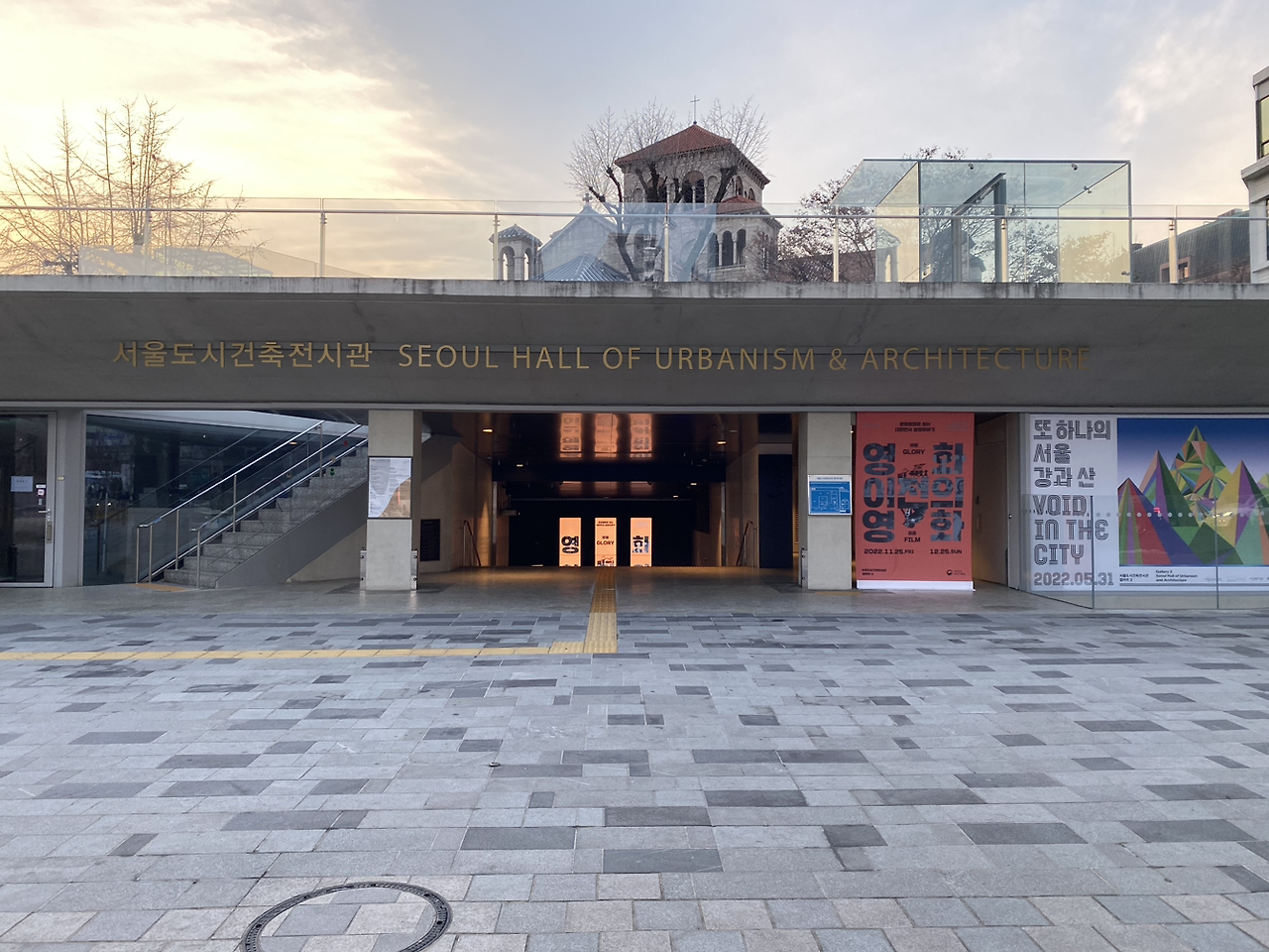 마지막으로 들른 서울도시건축전시관은 서울시청과 성공회 교회 사이에 있는 건축물로 기존 건축물을 허물고 지하에 공간을 만들어 전시장으로 만든 곳입니다. 이를 통해 세종대로와 서울시청에서는 아름다운 성공회 교회건물을 볼 수 있게 되었습니다. 이곳에서는 2023 서울도시건축비엔날레를 준비하는 과정으로서 '또 하나의 서울, 강과 산(Void in the City)'가 진행 중이며, 국가기록원에서 준비한 '영화 이전의 영화 - 문화영화로 보는 대한민국 성장이야기(The story of growth and 'Culture' Films)' 전시가 진행되고 있습니다. 2023 서울도시건축비엔날레의 모토는 '땅의 도시, 땅의 건축'으로 2023년 9월에 진행될 예정으로 '산길, 물긴, 바람길의 도시, 서울의 100년 후를 그리다'라는 주제로 다양한 건축, 도시 담론이 만들어질 것 같습니다. 이번 전시에서는 서울의 산과 강을 살펴보면서 도시의 잠재성을 재인식하고 도시를 혁신하는 도시전략을 만들기 위한 노력을 펼쳐 보이고 있습니다. 주제도 좋고, 담론을 만들기 위한 준비 작업도 좋은데 전시 공간이 너무 좁은 탓인지 패널들이 너무 작고 글씨가 작고 내용이 너무 많아 어떤 이야기를 펼치려고 하는지 알아보기가 힘들었습니다. 건축을 전공한 저조차도 이렇게 힘들진대 대중에게는 어떤 모습으로 읽힐지 궁금합니다. 서울시립미술관의 명료하고 직관적인 전시를 보고 와서 그런지도 모르겠습니다.