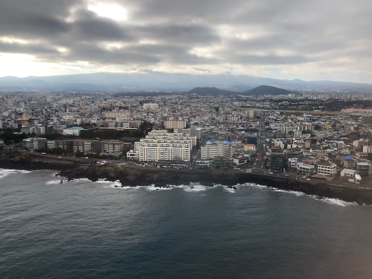 비행기가 제주 상공 가까이 가게 되면 가장 먼저 땅이 보이고 한라산이 보입니다. 제주 그 자체라 할 수 있는 한라산은 바다에 닿아야 끝이 납니다. 해안선에 파도가 부딪치면서 생기는 포말과 거친 땅을 일구다 보니 생긴 밭담과 공간을 이어주는 도로가 마치 현대미술처럼 펼쳐집니다. 이런 제주를 많은 사람들이 사랑하게 되었습니다. 지금부터 십 년 전까지만 해도 인구가 줄어들어 걱정이던 곳이 갑자기 인구가 늘어 여러 가지 일들도 생겼습니다. 쓰레기 문제도 생기고, 상하수도 문제도 생겨서 쓰레기 소각장이나 하수종말처리장을 급히 늘리는 작업을 하고 있으며, 편안한 제주로의 이동을 위해서 제2공항까지 준비하고 있습니다. 2020년의 모습입니다.