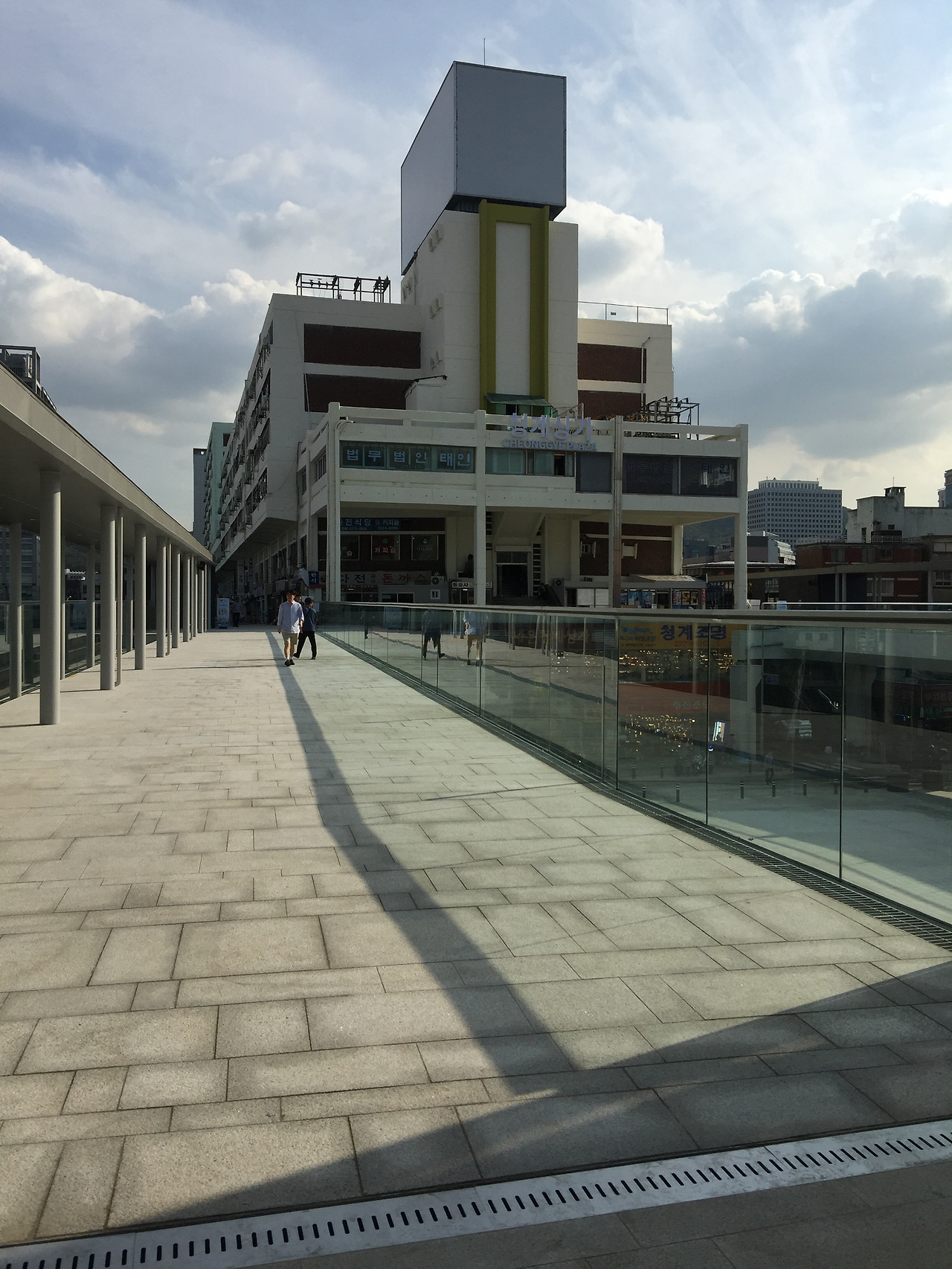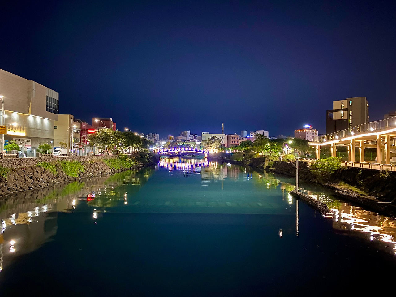 산지천을 현재의 생태하천으로 복원하기 전에는 산지천 위로 건물이 있었습니다. 1966년부터 1982년까지 동문로터리에서 용진교(임항로)까지 660m 구간에 주상복합건물 14~17개 동이 지어졌던 것입니다. 하지만 당시 하수도가 제대로 관리되지 않던 시기여서 오염되어 악취가 나는 등의 이슈가 있어 1990년대 들어 건물 노후화와 안전 문제 등으로 철거가 논의됩니다.