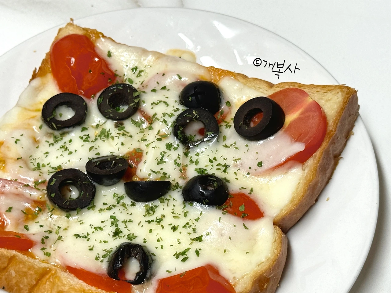 준비물을 호명하겠다. 빵, 치즈, 토마토, 올리브, 엑스트라버진 올리브오일. 끝이다. 진짜다. 이것만으로도 맛있다. 대신, 좋은 품질의 재료여야 한다. 빵도 일반 밀가루 빵으로 하면 느끼하고 속도 더부룩할 것이다. 만드는 법은 간단하다. 빵에 엑스트라버진 올리브오일을 달팽이 그리듯 촘촘하게 두른다. 방울토마토를 3등분하여 9조각(= 방울토마토 3개)을 고르게 올리고, 올리브도 마찬가지로 3등분하는데 양은 취향껏 올린다. 이제 치즈를 잘 녹도록 적당히 잘게 잘라 올려서 전자레인지에 돌리면 끝이다. 치즈는 꼭 모짜렐라를 사용하길 추천한다. 에어프라이어나 오븐이 있다면, 바삭한 맛이 추가될 것이다.