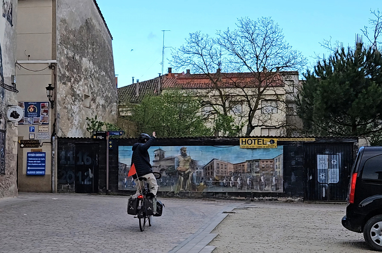출발 준비를 하고 숙소 앞으로 나오니 ‘멜린’이라고 하는 10대 후반의 벨기에 청소년이 자전거를 정비하고 있다. 자기는 벨기에 집에서 여기까지 2,060km를 61일에 걸쳐 자전거 타고 왔단다. “도대체 무슨 이유로 이 먼 길을 왔는가?" 물어보니, "아직 한 번도 스페인을 와 보지 못했는데, 고등학교를 졸업하고 스페인이라는 나라가 궁금해서 그냥 자전거를 몰고 나왔다.”라고 한다. 우문현답이다. 이 길을 가는 게 무슨 특별한 이유가 있어야만 하는 것은 아닐 것이다. “그냥 궁금해서”가 충분한 이유가 될 것 같았다. "너 언제까지 계속할 거니?", "지금 구체적 계획은 없고 더 이상 볼 게 없다고 판단되면 집으로 돌아갈 거야"라고 대답한다. 이 역시 우문현답이다.