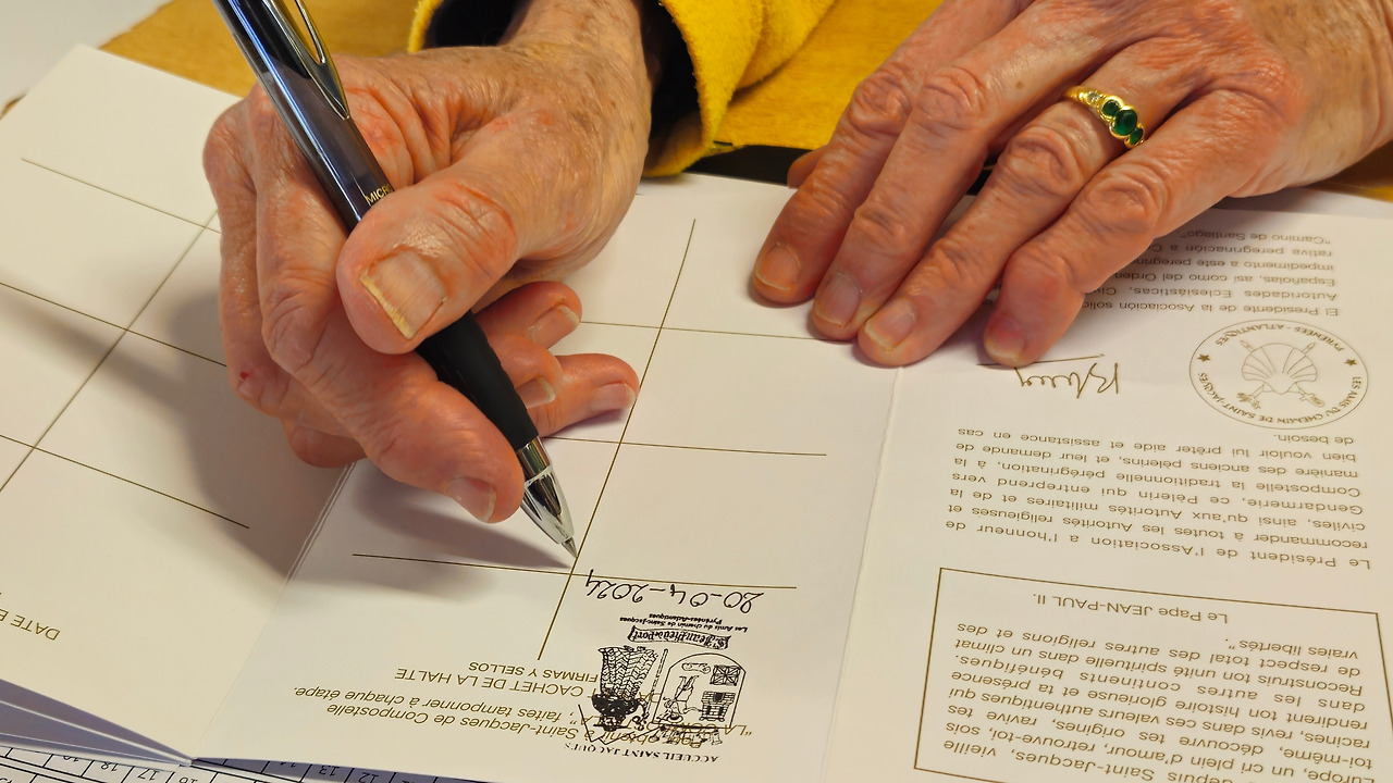 한 시간 정도를 기다려 내 차례다. 친절한 자원봉사자에게서 한국인에 대한 배려가 몸에 배어 나왔다. 나는 노란 옷을 예쁘게 차려입은 프랑스 할머니가 상세하게 안내해 주었다. 한글로 된 피레네 등반 안전 수칙과 등산 지도를 설명해 주고, 순례자 여권도 발행하고 출발 날짜와 순례자 사무소 특별 스탬프를 찍어 주었다.