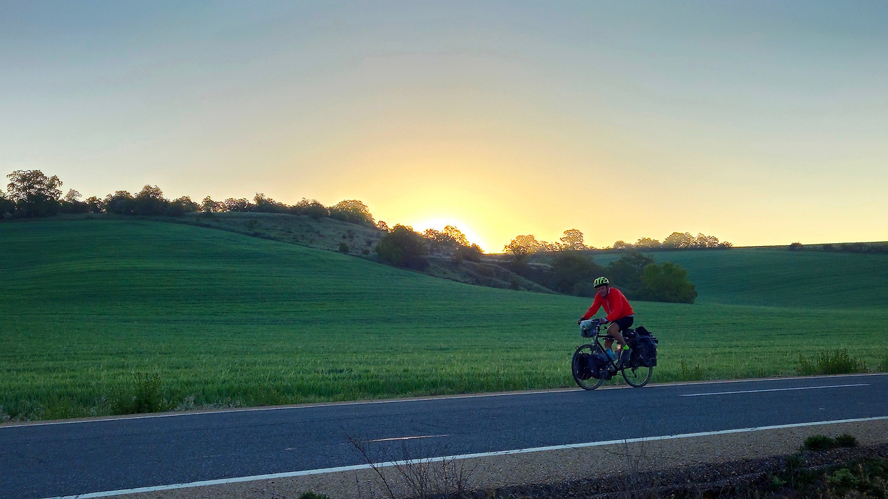 메세타는 다양한 매력을 순례자에게 보여준다. 덥고, 뜨겁고, 바람 불고, 춥고를 분명하게 보여준다. 오늘 어떤 매력을 보여줄지 선택은 우리가 아니라 하늘이 결정해 준다. 오늘도 메세타는 나를 배반하지 않았고 자기의 본분을 다했다. 눈이 부시게 푸르른 색을 선물하였고 그 대가로 따가운 햇살을 나의 온몸에 뿌려 놓는다. 얼굴은 붉게 타 들어가고 목덜미는 따가움으로 도배되었다. 반 손가락장갑을 벗어보니 손가락 둘째 마디까지 선명하게 검게 그을려 있는 모습이 신기했다.