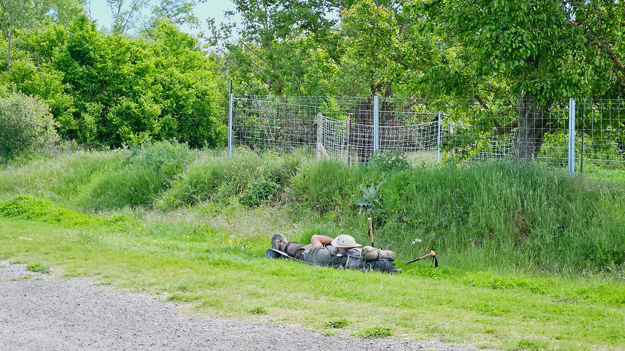 산티아고 순례길에서는 이런저런 고수를 만나는 것도 하나의 재미이다. 쏟아지는 스페인 태양 아래 국도를 따라 걷는 길은 정말이지 돈 받고는 못 할 노릇이다. 그런데 어느 마을을 지나니 작은 숲과 맑은 물이 흐르는 수로가 나타났다. 그늘이 얼마나 반가웠는지 모른다. 기분 좋게 통과하고 있는데 한 순례자가 그늘진 땅바닥에 발포 매트를 깔고 코까지 골며 아주아주 깊은 잠에 빠져 있다.