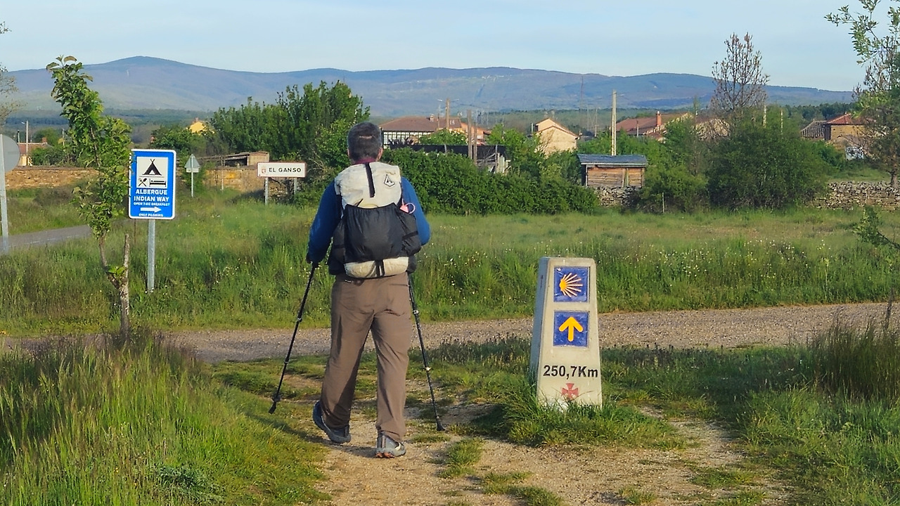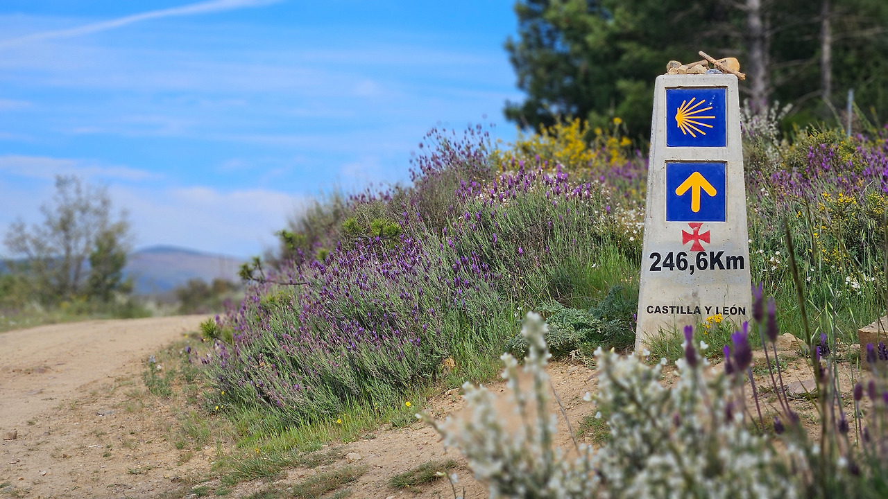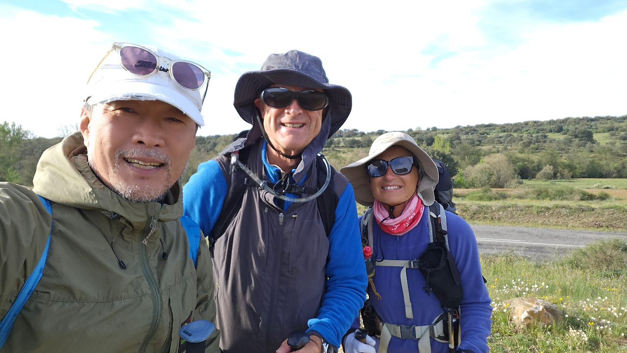 해발 900m 고원 지대가 주는 공기는 확실히 맑고 청량했다. 저 멀리 산 위에 아직도 잔설이 남아 있는 걸 보니 오늘 올라야 할 언덕과 내일 넘어야 할 고지가 만만치 않을 것을 예고하는 것 같다. 오늘부터는 도시로부터 멀리 떨어져 한적한 까미노를 걷게 되고 중간중간에 작은 마을 지나 산티아고까지 이어질 것이다.