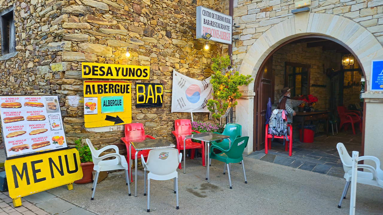 한 카페에 태극기가 걸려있다. 반가워하는 나에게 “안녕하세요?” 하며 주인이 한국어로 말을 건네온다. 태극기는 많이 찾아준 한국인들을 환영하기 위해 걸어 놓았다고 했다. 이른 아침이라 사진만 찍고 다음 마을로 건너가야 했지만 스페인 주인의 따뜻한 환대에 기분이 좋아졌다.