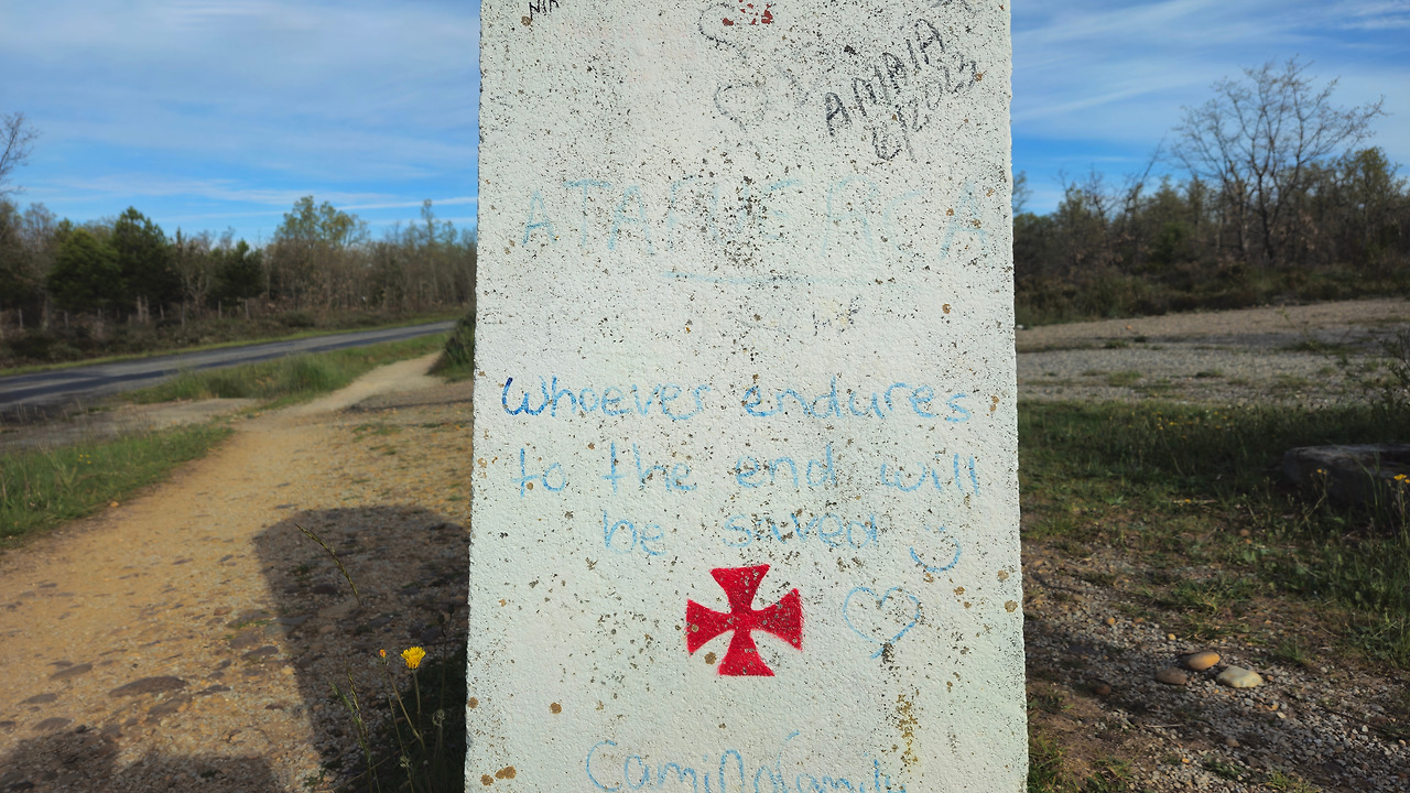내일 새벽 미명에 산을 올라야 하기에 일찍 배낭을 꾸리고 잠자리에 들기로 했다. 침대에 누워 이런저런 생각하며 오늘 촬영한 사진을 보다가 또 다른 낙서를 찾아냈다. “Whoever endures to the end will be saved.(끝까지 견디는 자는 구원을 얻으리라)" 그렇다. 이제 산티아고가 멀지 않았다. 끝까지 견디는 자가 되자.