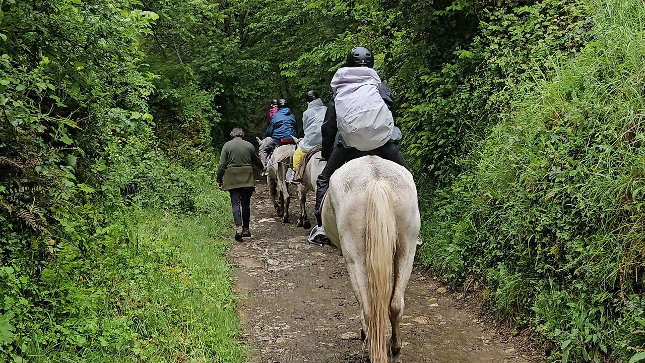 그런데 마을에 도착하니 포장도로가 보이고 자전거를 탄 순례자들이 지나간다. 앵? 조금 있으니 이제는 말을 탄 순례자 무리가 올라가는 게 아닌가? 알고 보니 조금 편하게 올라오는 차도가 있었던 것이다. 말을 탄 순례자들은 유료로 이용하는 서비스라고 한다. 미리 알았으면 이거 이용했으면 좋은 경험이었겠다 싶었다.