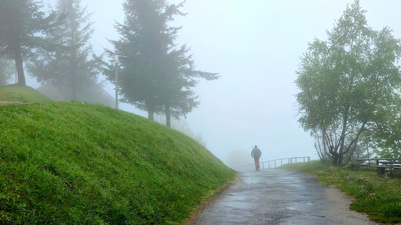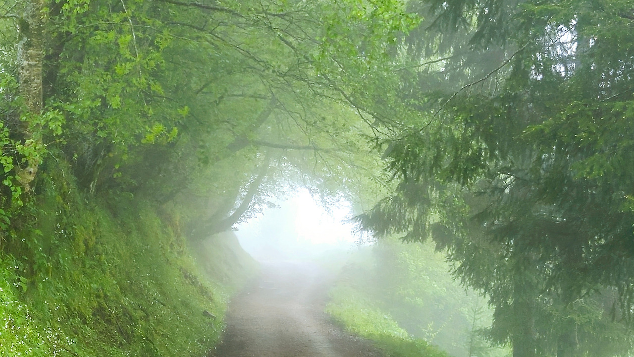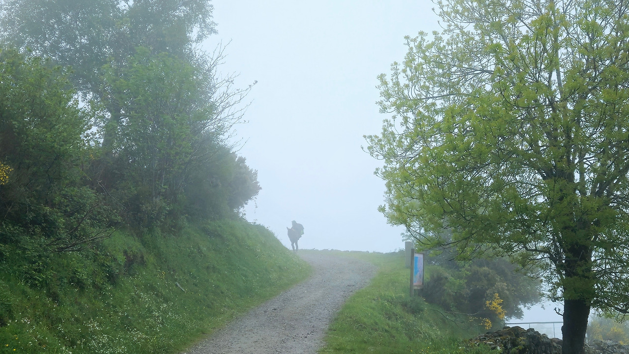 앞서가던 스페인 아가씨에게 "이게 비인가? 안개인가? 구름인가?" 물어보니 대답이 멋지다. “난 신경 안 써 그냥 지금 이 순간에 최선을 다할 뿐!” 그렇다. 이게 비면 어떻고 안개나 구름이면 뭐가 달라질 것 인가? 그냥 안전하게 다치지 않고 산 아래 마을까지 내려가는데 만 최선을 다하자.