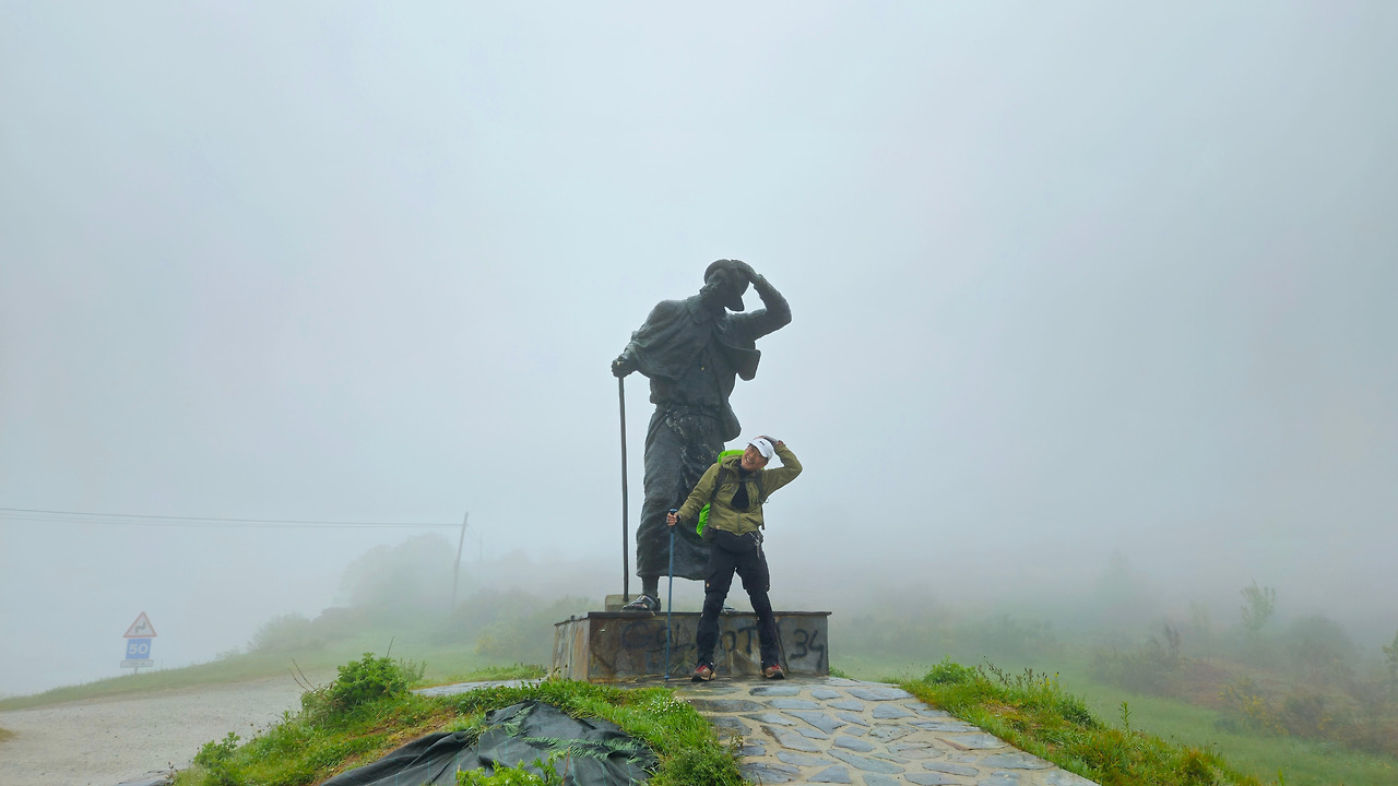 오 세브레이로를 넘은 많은 후기를 보면 계절과 관계없이 추위와 바람으로 고생했다는 이야기가 제일 많았다. 오늘도 그랬다. 5월 중순 날씨치고는 비바람이 불어 상당히 춥고 특히 손이 아주 시리다. 지금까지의 경험으로 보면 방풍이 제대로 되지 않은 옷을 입으면 심장에 무리가 될 것 같았다.