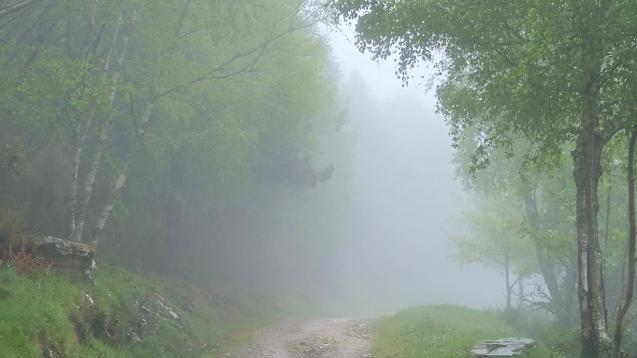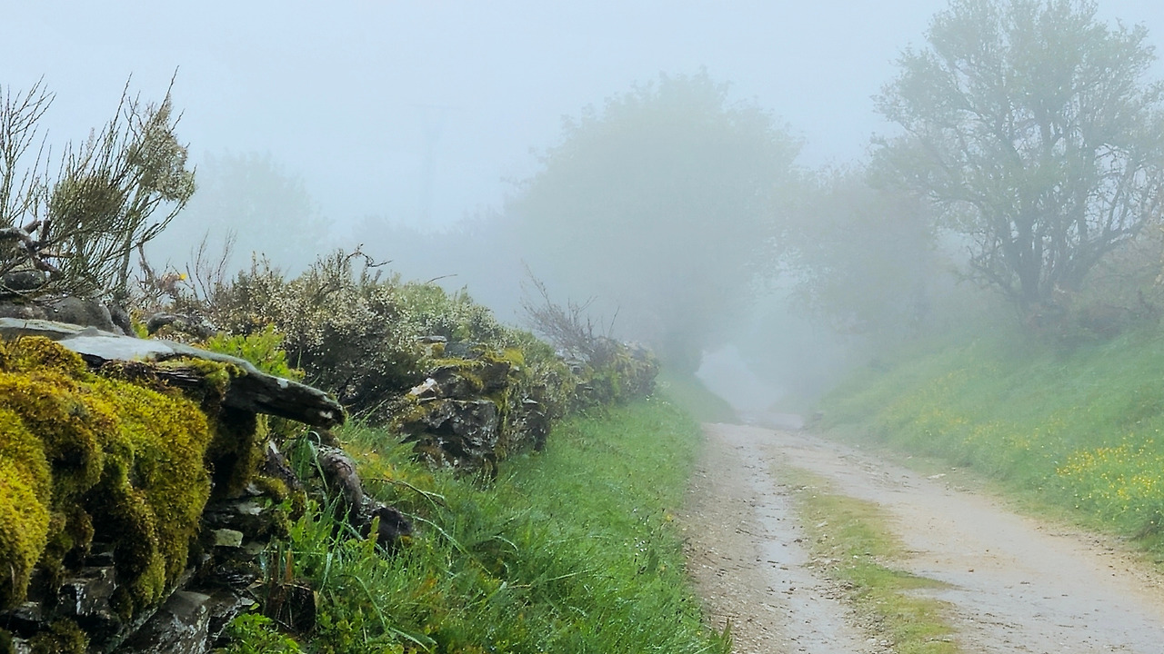 온도는 더 내려갔고 비는 그칠 기세가 없다. 온통 안개로 앞도 잘 보이지 않는다. 서둘러 가야지 했는데 내리막이 생각보다 심하다. 아직도 14~15km 정도를 더 내려가야 할 텐데 이 정도 경사라면 시간이 많이 걸릴 듯하여 걱정이라고 하자 옆에 걷던 어떤 사람이 바로 앞에 나오는 '비두에도' 마을부터는 경사가 더 심해질 거라고 한다.