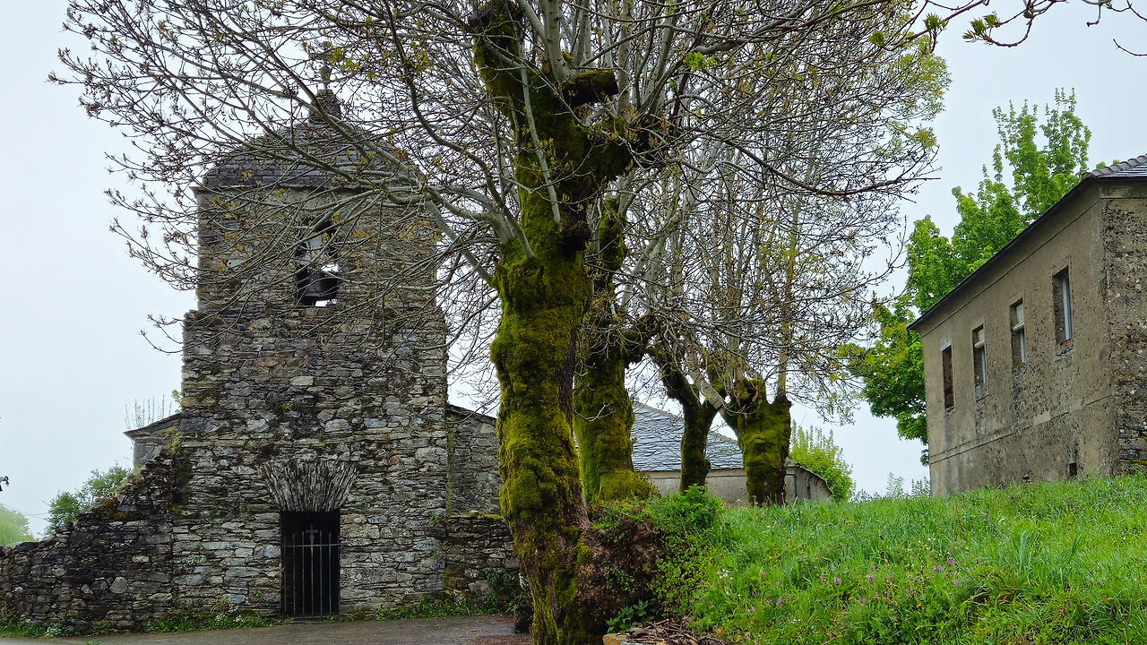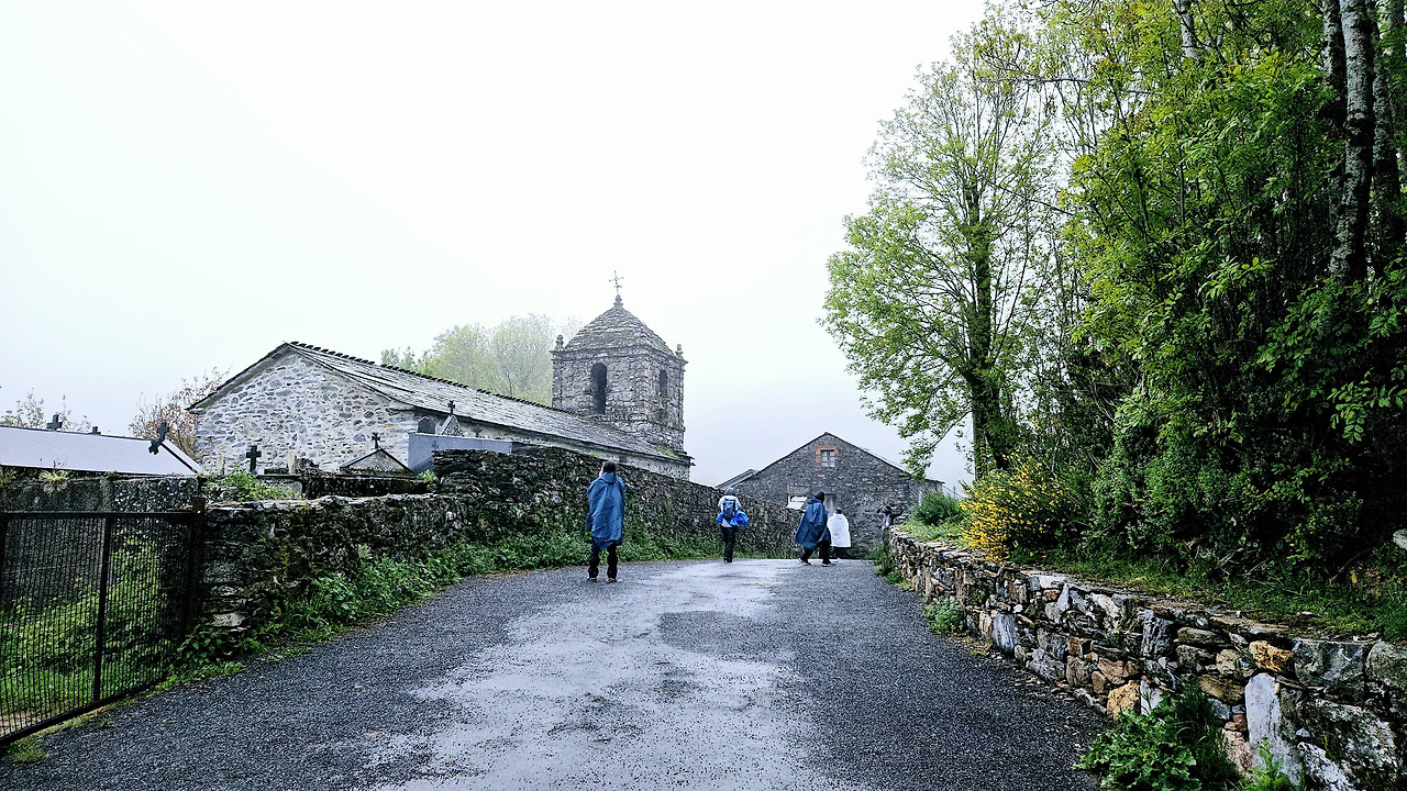 이곳 갈리시아 지방으로 넘어오니 이정표가 잘 정리된 편이고, 길도 정비한 흔적이 보일 정도로 단정하여 걷기가 편했다. 다른 지방은 주로 붉은 사암이 많았다면 이곳 갈리시아는 단단한 화강암이 많은 것 같다. 화강암을 사용하다 보니 건물도 투박하고 강하게 보이는 경향이 있다. 오 세브레이로 마을도 그랬고 지금 이 마을도 거친 화강암으로 단단하게 지어진 건물, 교회들이 눈에 들어온다.
