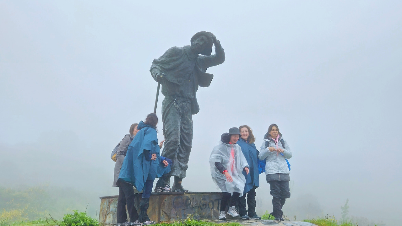 이곳 갈리시아의 수도가 산티아고 데 콤포스텔라라고 하니, 순례길도 이제 막바지에 접어든 것이다. 이 표지석에서는 기념사진 한 장 찍어야겠다. 한참을 기다리고 있으니 안갯 속에 한국 여성 한 사람이 올라온다. 반갑게 촬영을 부탁하니 한국말을 못 한단다. 호주에서 온 교포이고 이곳 스페인에 비즈니스가 있어 일을 시작하기 전에 순례길 일부라도 걷기 위해 왔다고 한다.