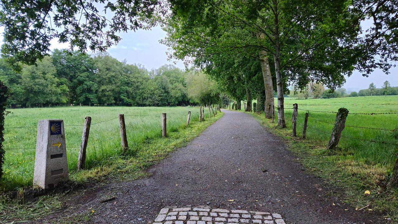 그냥 터벅터벅 걷는데 저 앞에서 소형차 한 대가 작은 오솔길에서 나오다 큰길로 들어오기 위해 잠시 멈춘다. 손을 흔들며 뛰어가니 젊은 여성 운전자다. 그런데 영어를 전혀 못 한다. 손짓발짓하며 까미노로 데려다 달라고 했는데 못 알아들어 마지막 수단으로 지도를 보여주며 “여기! 여기!” 했더니 알아들었는지 타라고 신호한다. 한참을 달려 노란 화살표가 보이는 오솔길 입구에 내려주고 오던 길을 되돌아갔다. 뭔가 고맙다고 이야기하고 싶었지만 소통할 방법이 없어 서로 얼굴만 마주 보다 웃으며 헤어졌다.