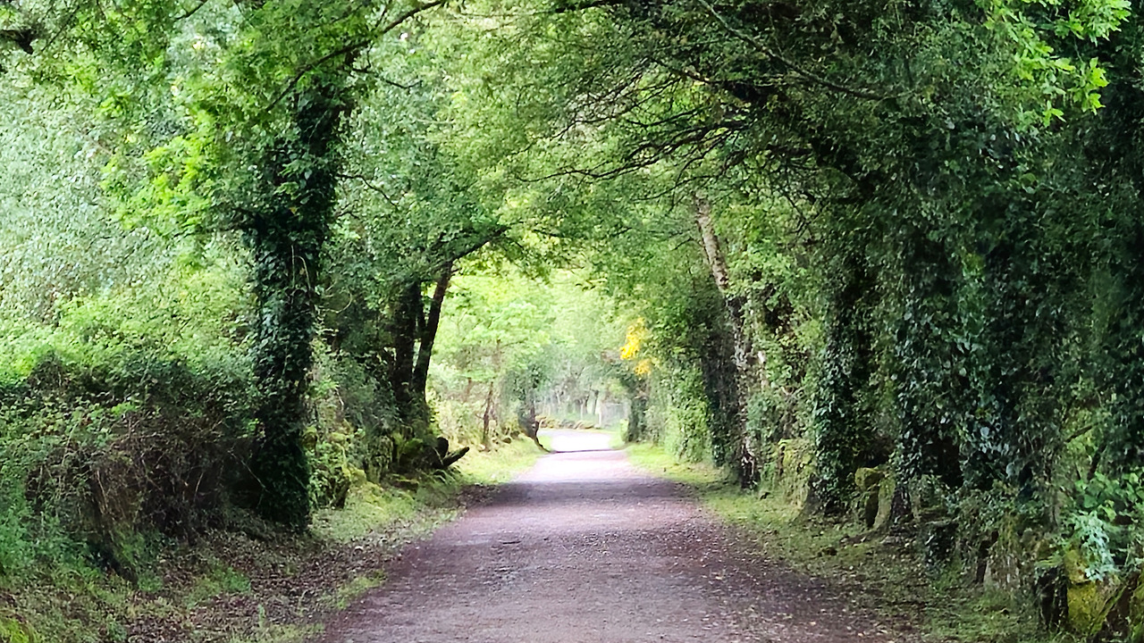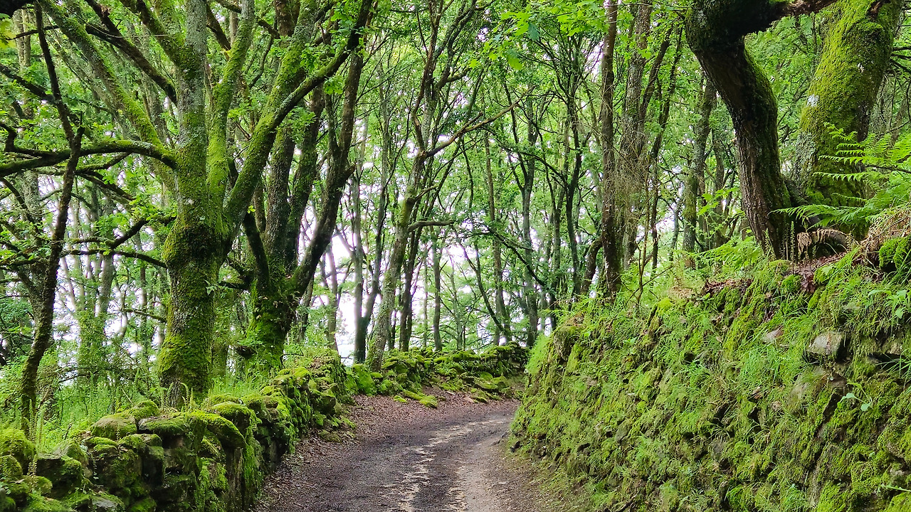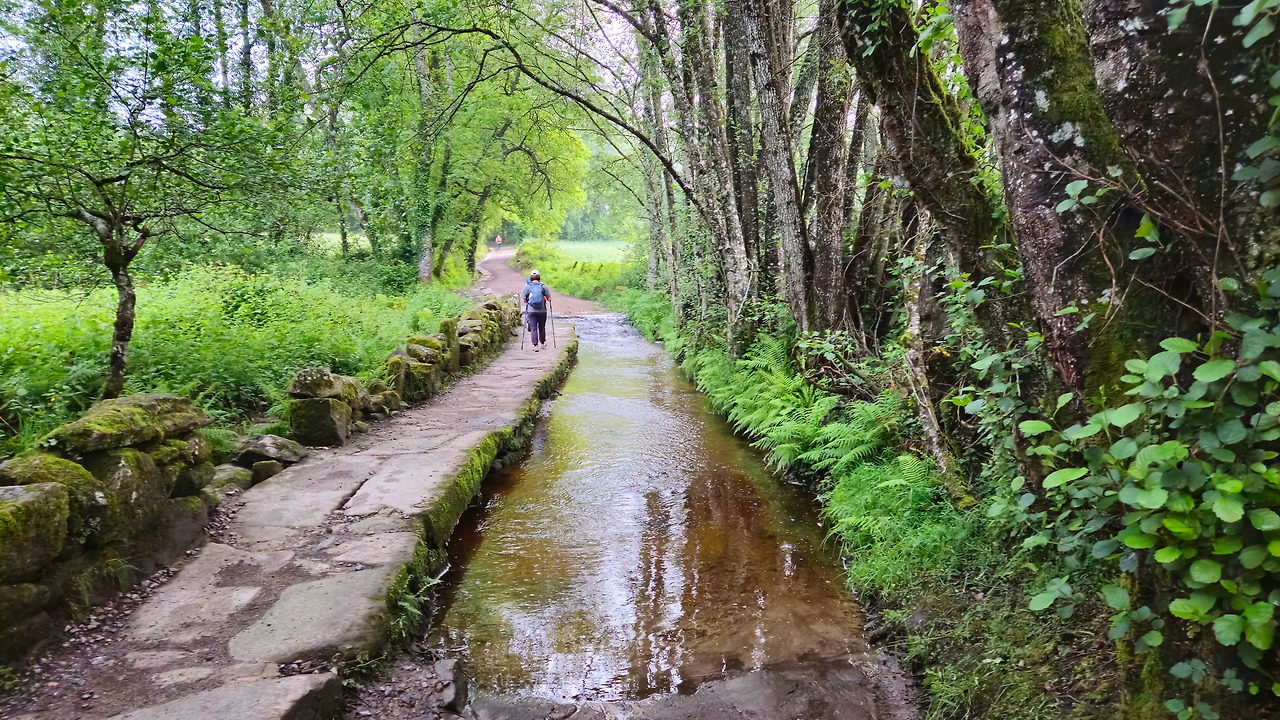 이곳 갈리시아 지방은 비가 많이 오는 지방인가 보다. 주변의 돌, 바위 그리고 나무에도 온통 이끼가 앉아 있다. 그리고 깊지 않지만 제법 울창한 산림은 까미노를 걷는 앞뒤 순례자 모습이 보이지 않게 되어 더욱 신비스럽고 오늘 같이 특별한 사연이 있는 경우에도 좋았다.