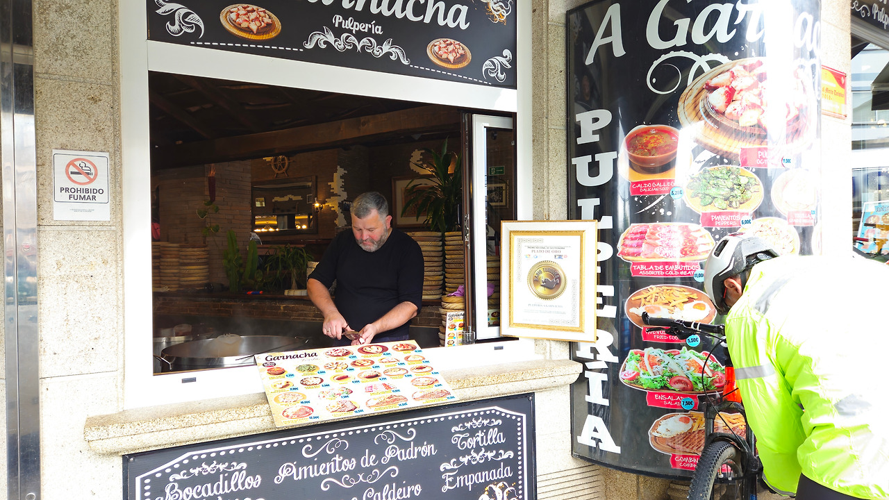 그런데 바닷가도 아닌 이 도시가 문어 요리로 유명하다는 것이 아이러니이다. 이 지방에 올리브 오일과 굵은소금, 파프리카 같은 것들이 많이 나오는데, 인근 갈리시아 해안에서 잡힌 문어에 이것들을 섞어 요리하기 시작했고 순례자들 몰려오면서 유명해졌다고 한다. 여기저기 식당에서 문어 다리를 들고 순례자들을 유혹하고 있다. 어느 식당에 들어가야 할지 모르겠는데 낯익은 한국 사람이 식당에서 뛰어나와 여기가 제일 유명하다고 소개해 주어 들어갔다. 흠~~ 우리나라 사람들 입맛에도 잘 어울린다. 그러나 약간의 고춧가루와 구운 마늘 그리고 대파 기름을 곁들이면 더 맛있겠다.