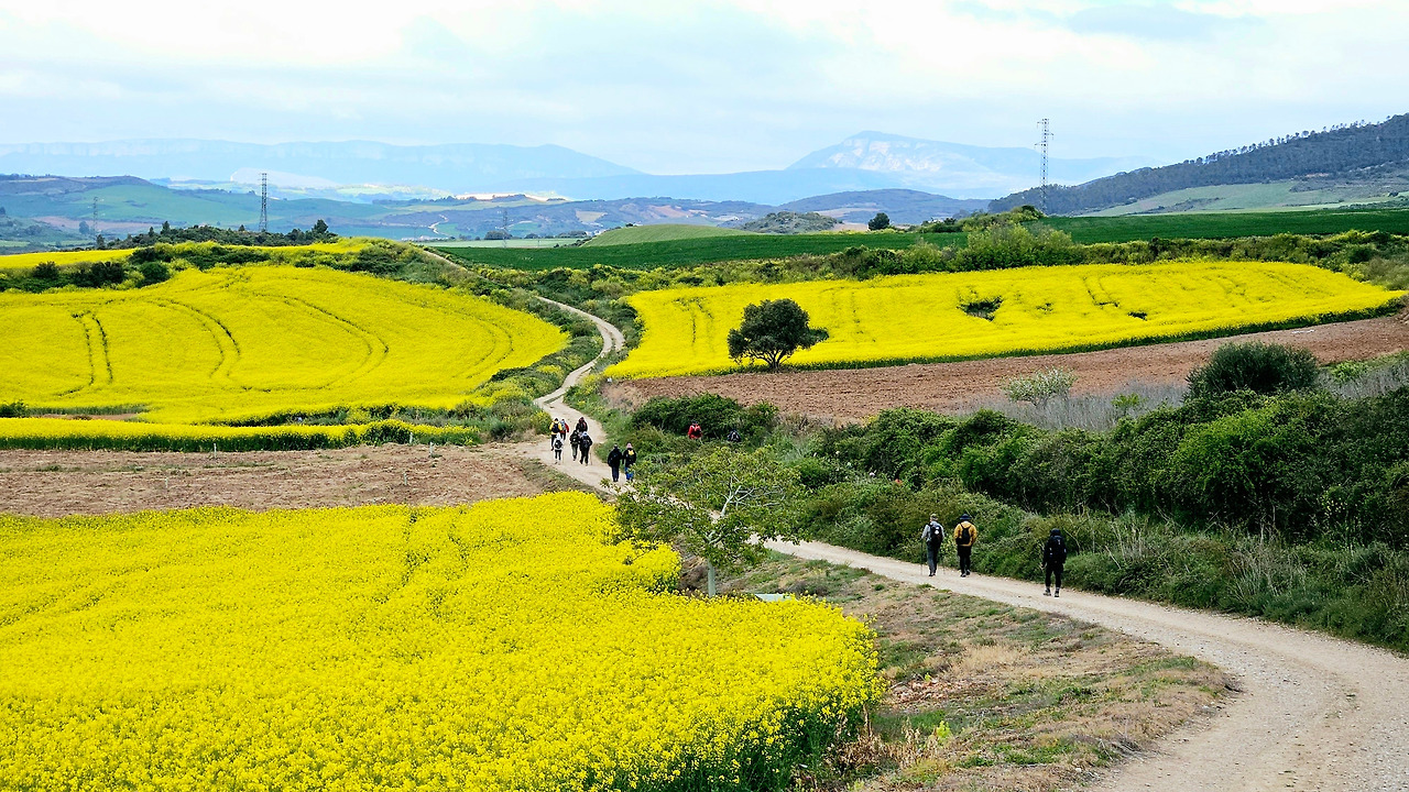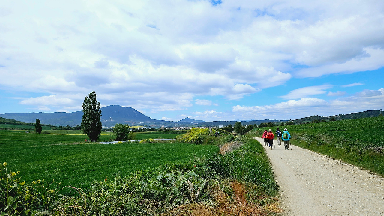 여러 겹 겹쳐 입은 옷들을 하나씩 벗어내고 온기를 즐기면서 오늘의 목적지 ‘에스테야’를 향해 한발 한발 걸었다. 3.5 km 남긴 마지막 마을 ‘빌라추에르타’에 도착했다. 마을 공원 잔디에 앉아있다 배낭을 가만히 보니 아침에 챙겨 온 물 한 병이 그대로 있다. 이런 바보! 오늘도 물을 마시지 않았다. 이제야 물 한 모금 마시고 걷기를 계속하니 작은 강을 따라 멀리 목적지가 보인다. 에스테야! 이곳에 도착한들 나를 반겨줄 사람도 없고, 딱히 할 일도 없는데 도착이라는 단어가 주는 안도감이 외로움을 이겨내고 편안함을 전해 주고 있다.