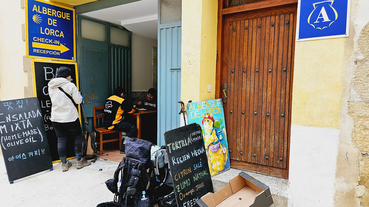 알베르게 로르카에 도착했다. 입구 간판에 ‘맛집’이라는 한글이 쓰여 있다. 추위에 13.5km를 허기진 배로 걸어왔으니 이제 따뜻한 국물을 먹고 싶다. 가게에 들어서니 한국인 부인이 반갑게 맞아준다. 추운 날씨를 고려하여 병아리콩 수프와 토르티야를 추천해 주었는데 아쉽지만 라면은 할 수 없단다. 앉을자리가 없는데 한국인 3명이 앉은자리에 가서 합석했다. 병아리콩 수프는 따뜻하고 맛있었다.