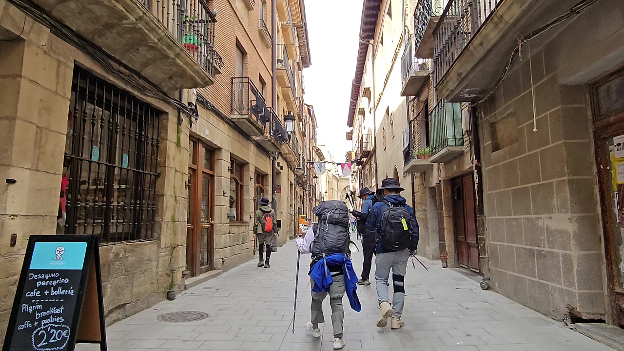 이 도시는 ‘타파스’가 유명하다고 한다. 많은 순례자가 타파스 거리로 모여들어 유명 타파스 맛집 깨기 순례를 한다고 한다. 이 거리에서 서로 만나 인사 나누고, 포도주도 마시며 하루 피로를 푼다. 나도 저녁에 이 거리에 가면 많은 사람을 만날 수 있을 것이다. 그러나 고민만 하다 그냥 숙소로 들어가기로 했다. 다리 근육이 뭉치고 통증까지 나타나고 있기 때문이다.