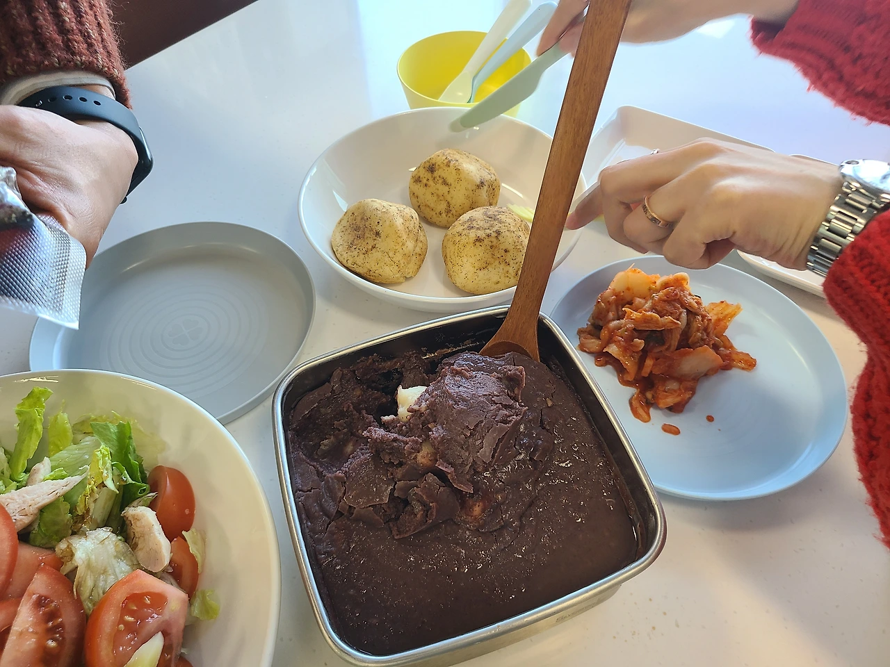 단팥죽을 가져오는 친구에게 내가 가져간다고 한 김치도, 샐러드와 함께먹으려고한 치즈도 까먹고.(이정도면 그래도 양호했다..)