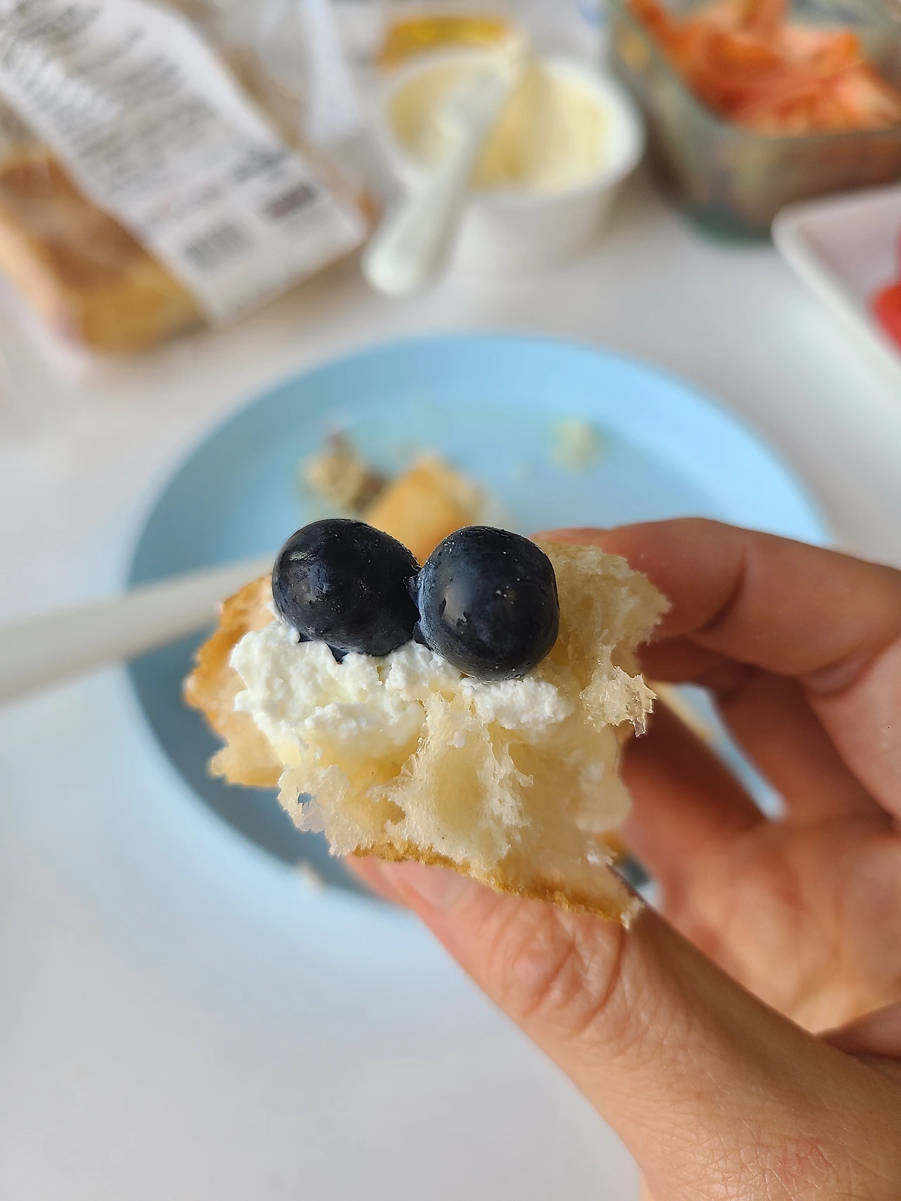 치아바타 + 그릭요거트 + 꿀 + 블루베리다.