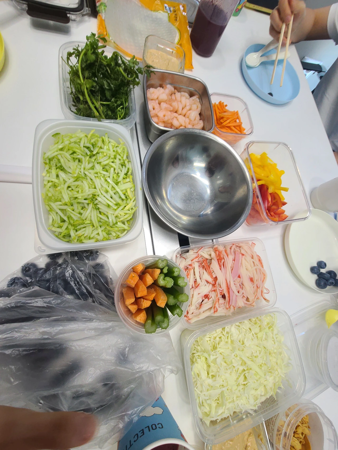 오이,파프리카,당근, 각종 야채들과 맛살, 새우
