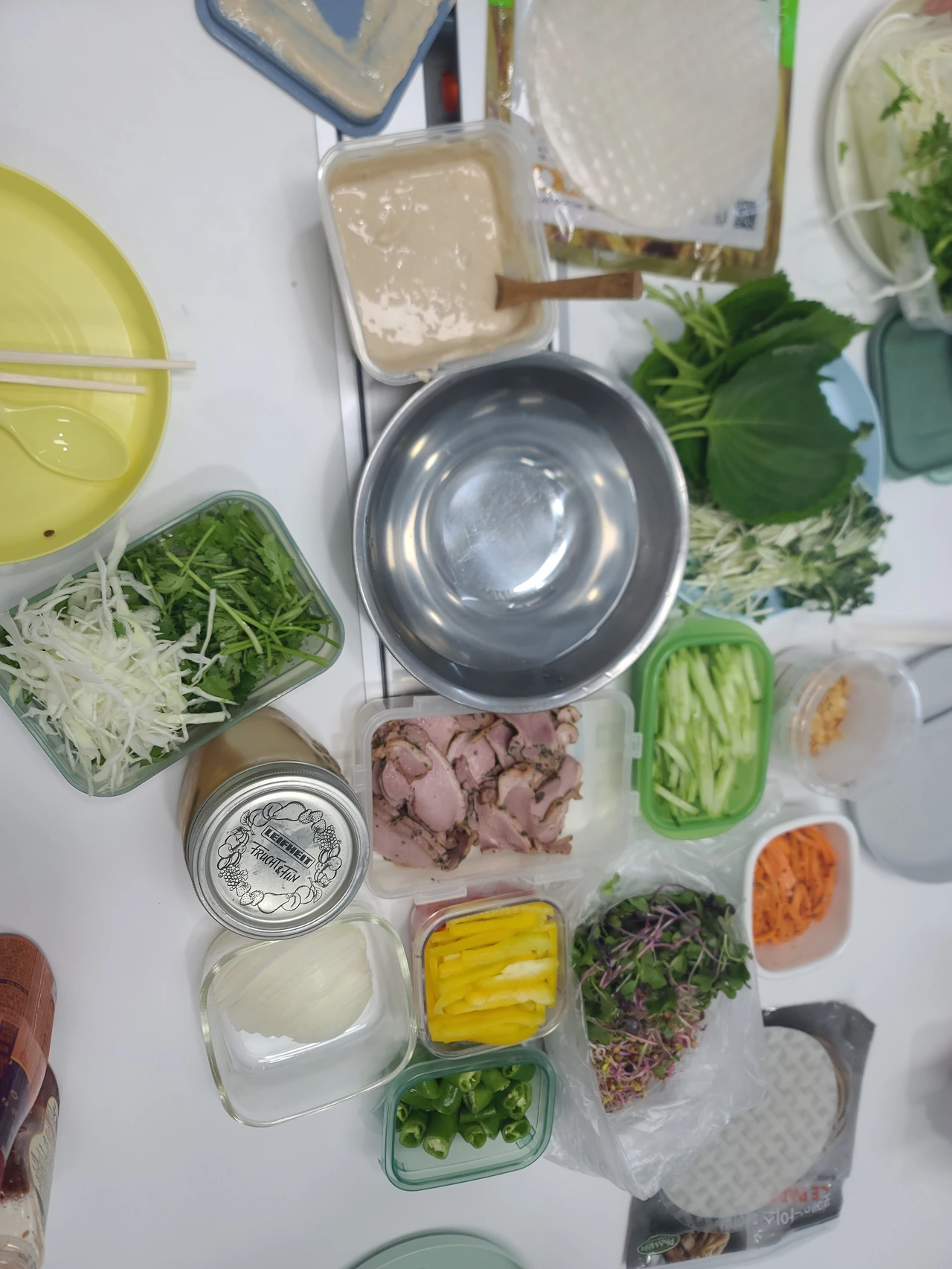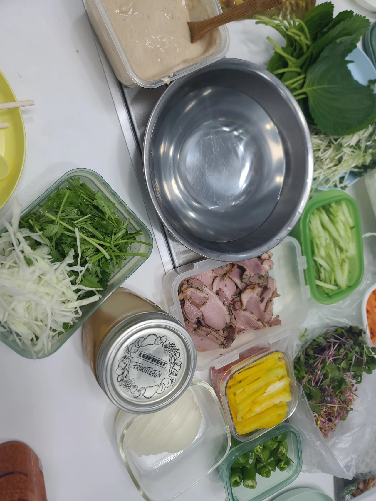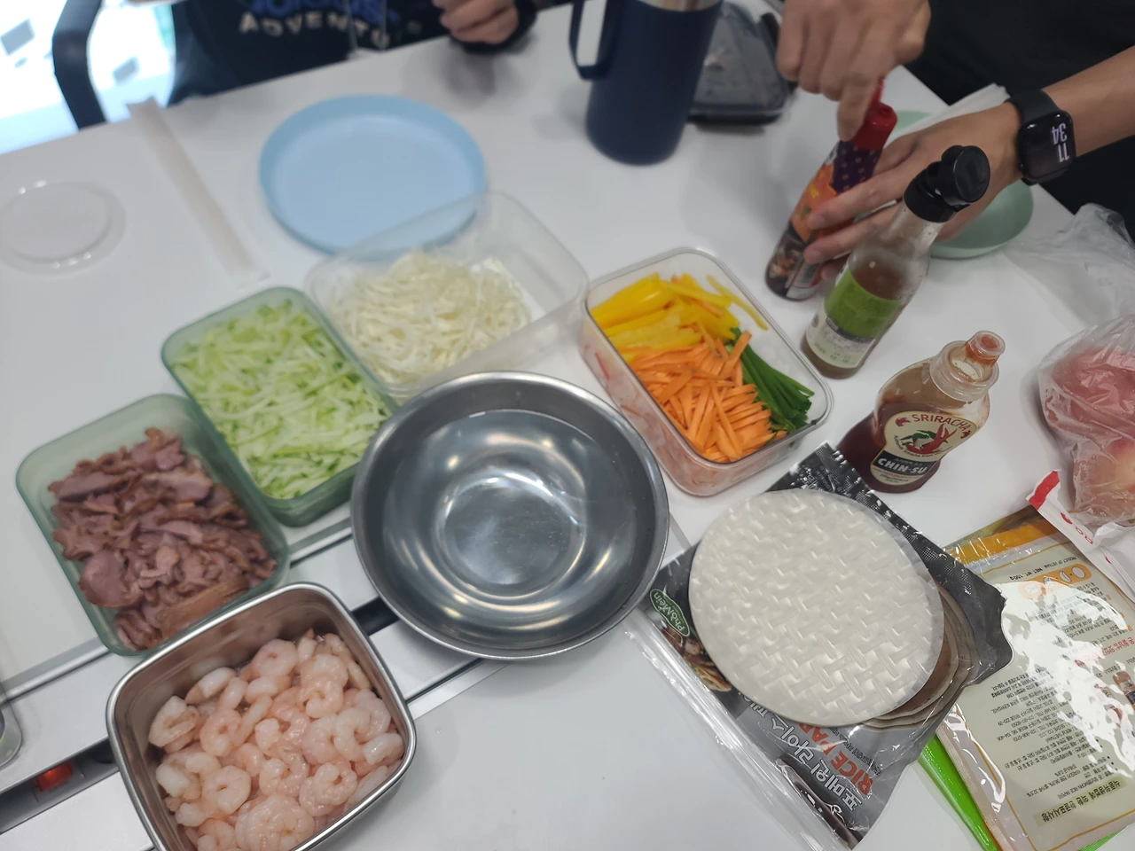 메뉴는 언제나 월남쌈. 각자 싸올 야채와 단백질거리, 소스등을 정하고 그 메뉴를 싸오기만 하면 끝이다.