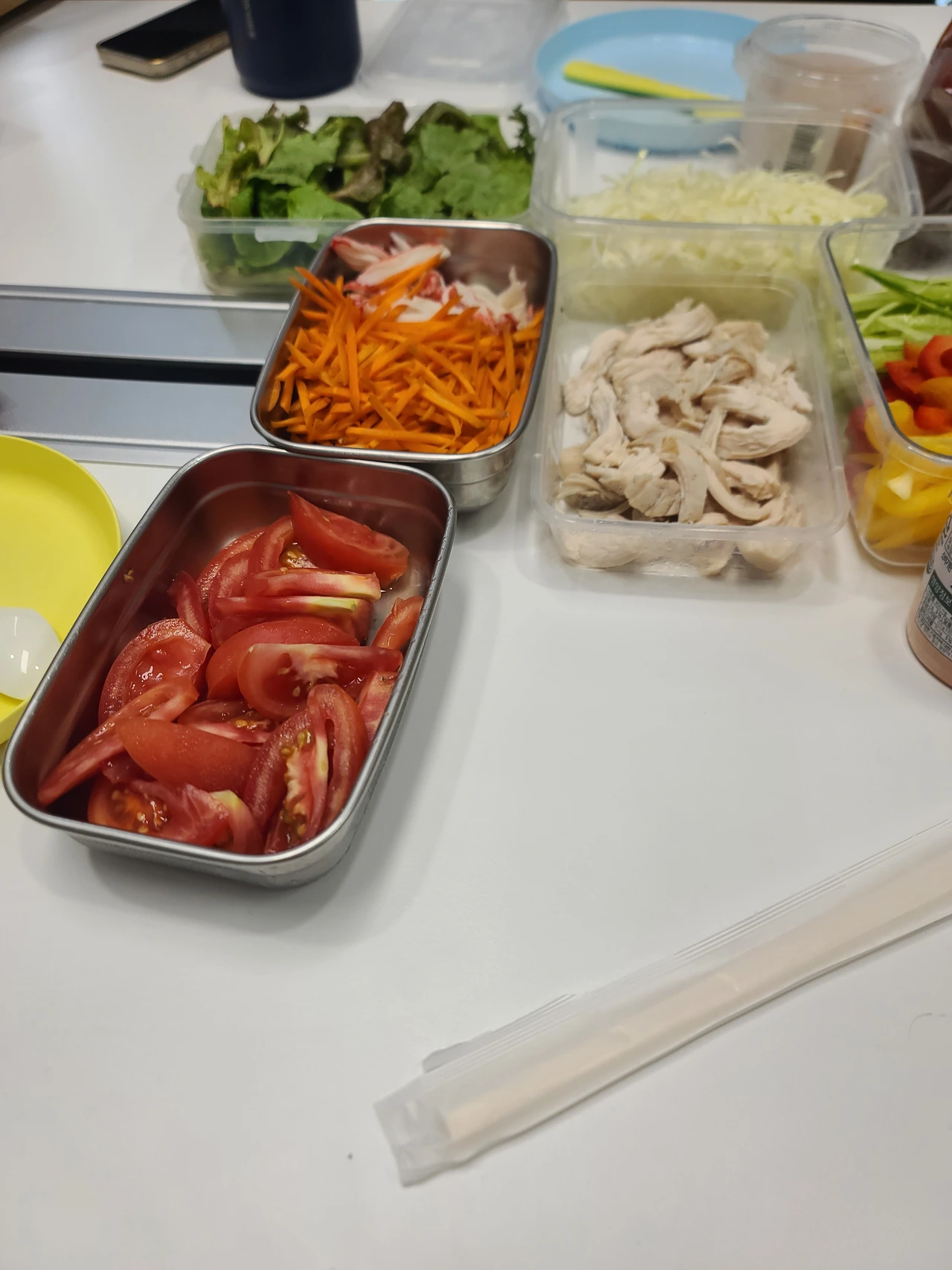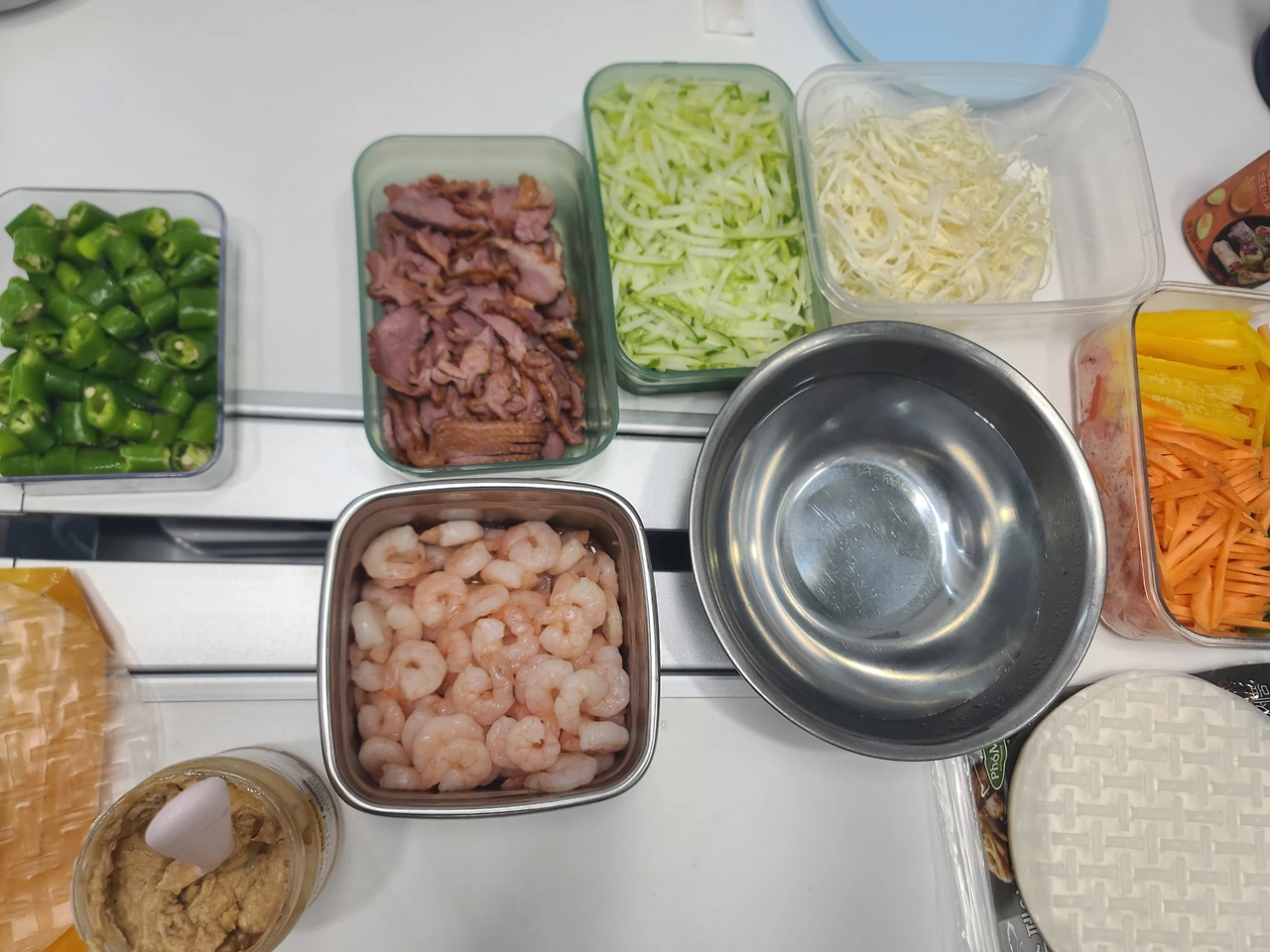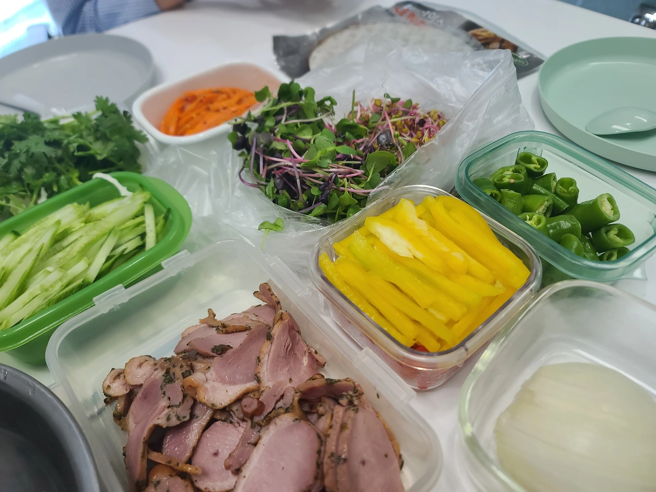 메뉴는 언제나 월남쌈. 각자 싸올 야채와 단백질거리, 소스등을 정하고 그 메뉴를 싸오기만 하면 끝이다.